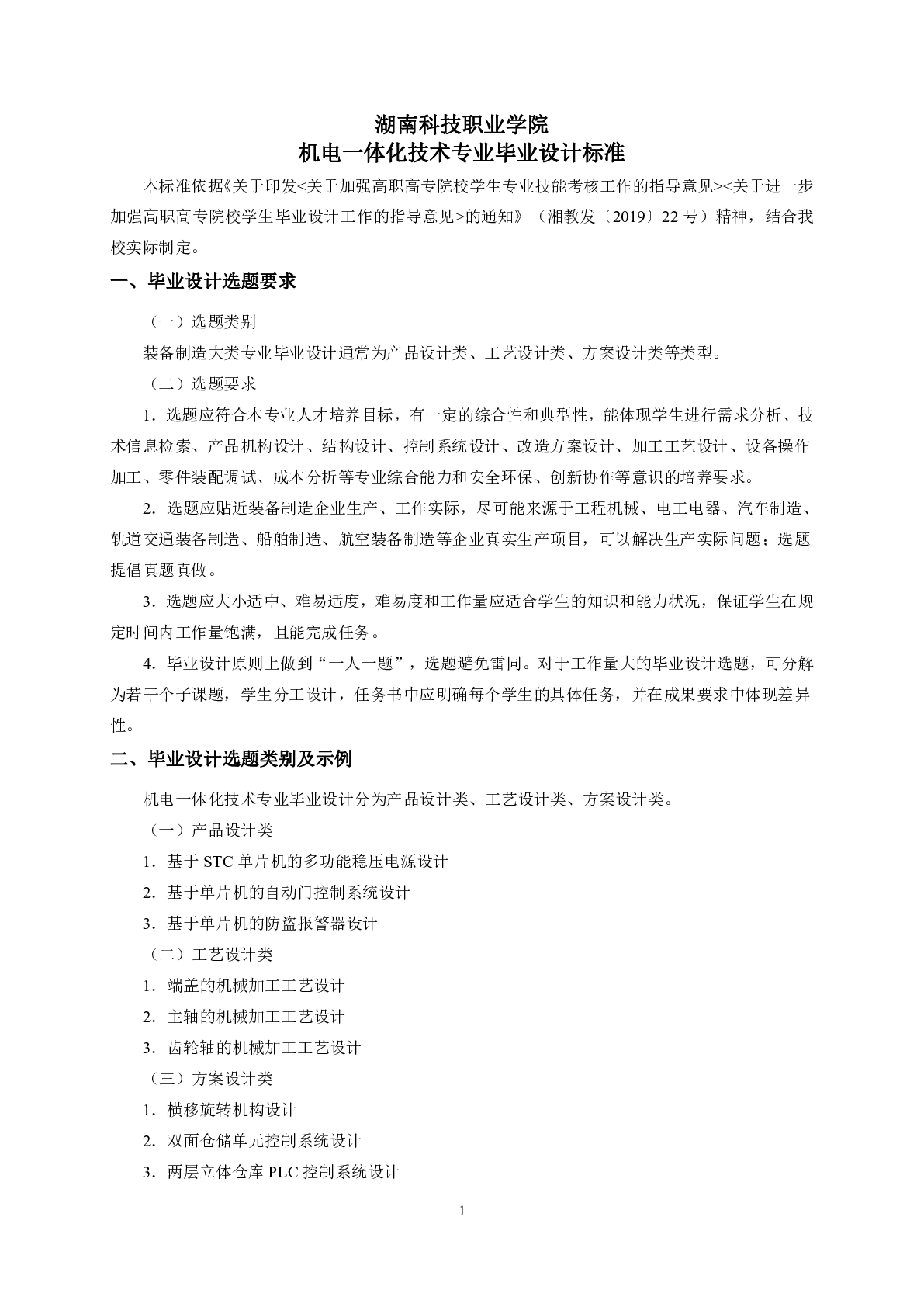 智能装备技术学院机电一体化技术专业毕业设计标准(2023届)