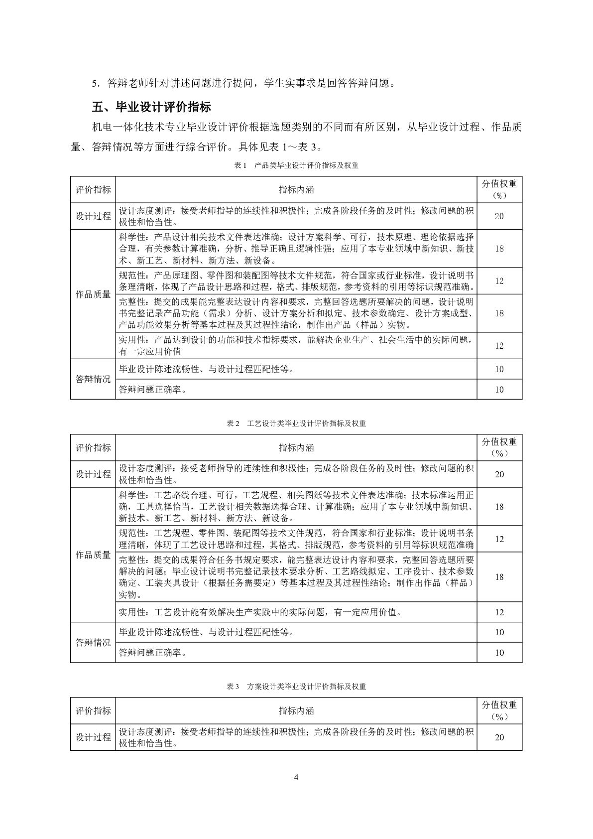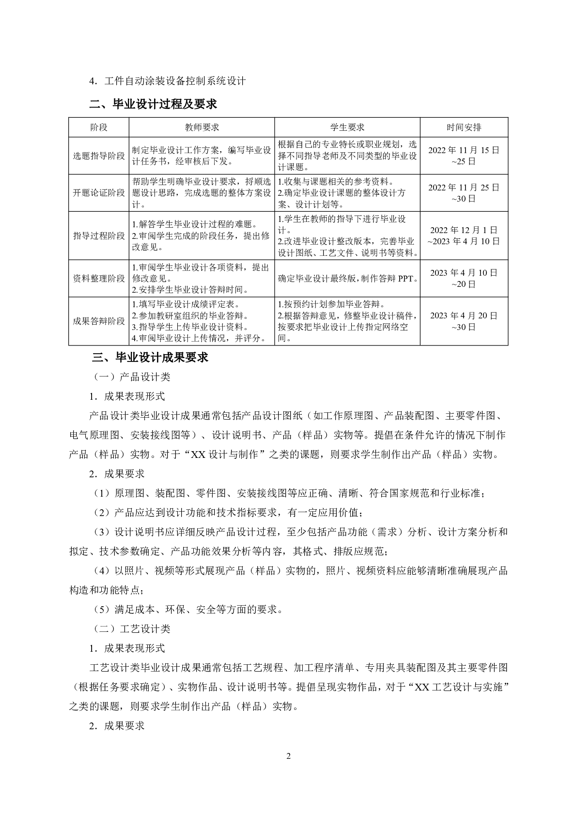 智能装备技术学院机械制造与自动化专业毕业设计标准(2023届)