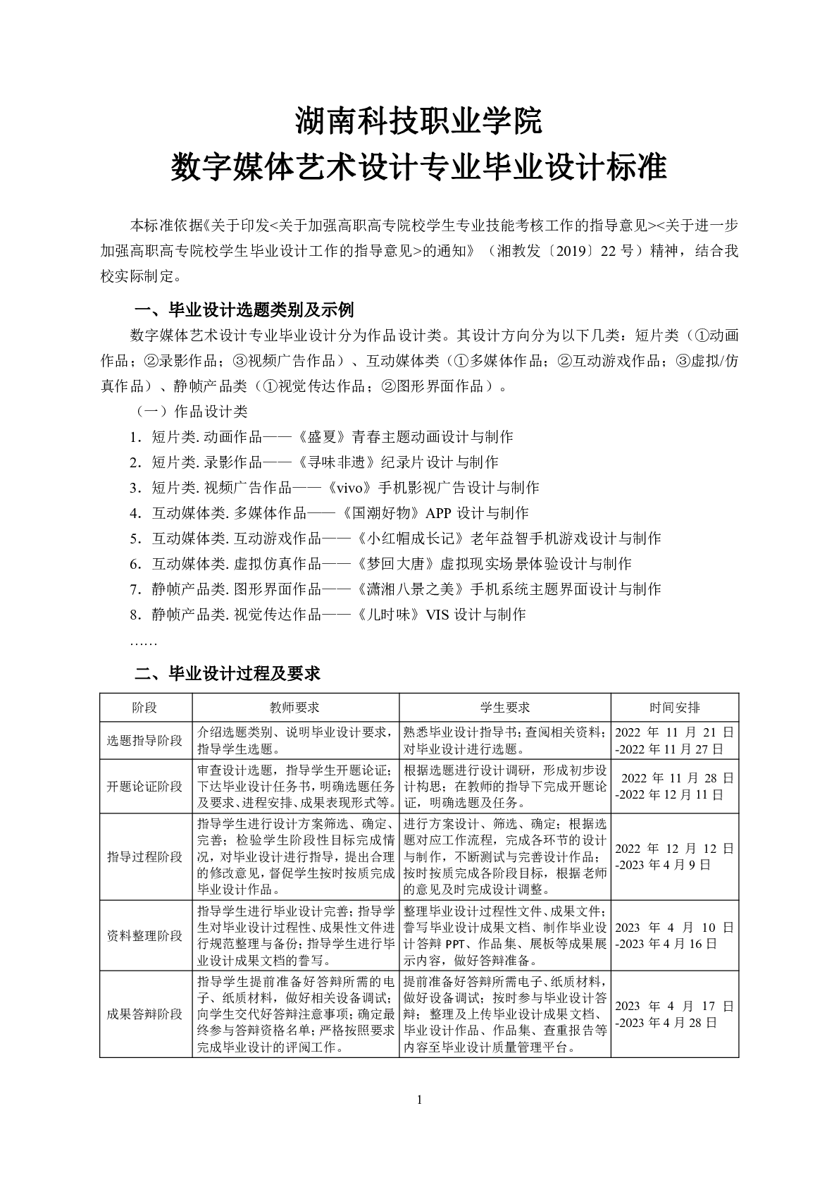 艺术设计学院数字媒体艺术设计专业毕业设计标准(2023届)