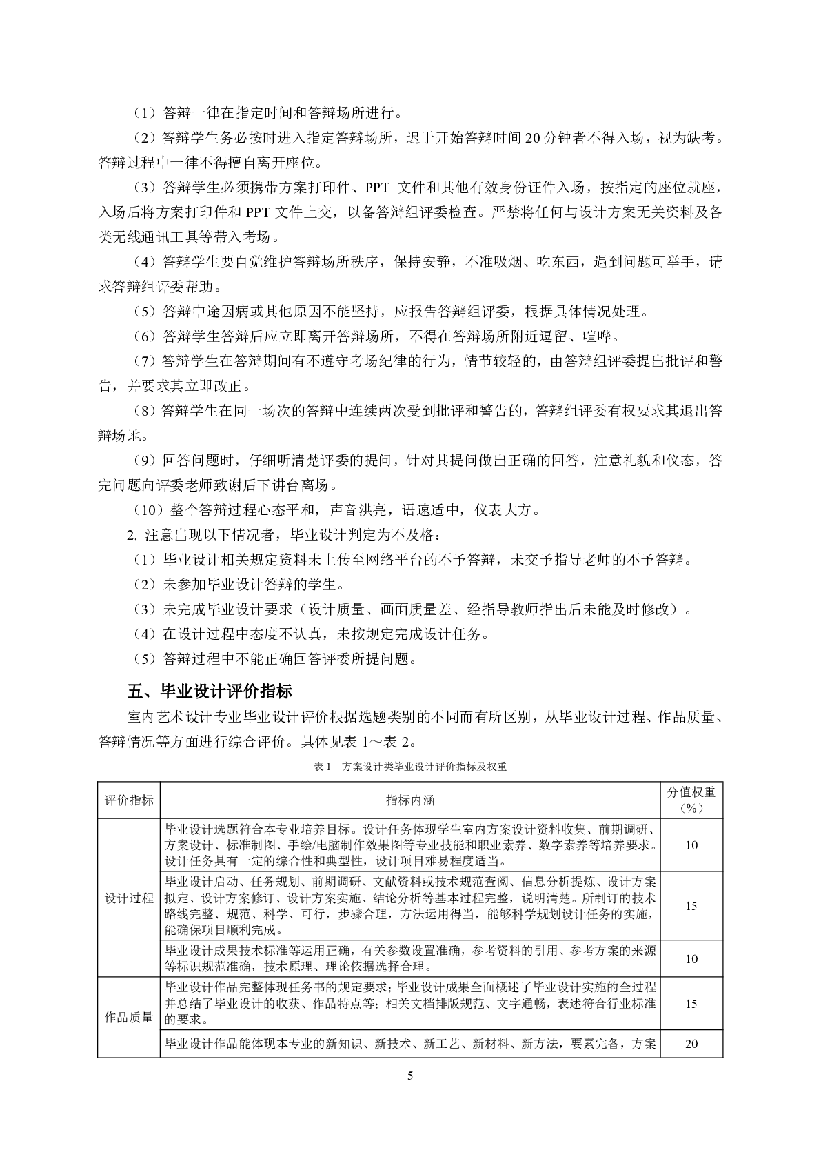 艺术设计学院室内艺术设计专业毕业设计标准(2023届)