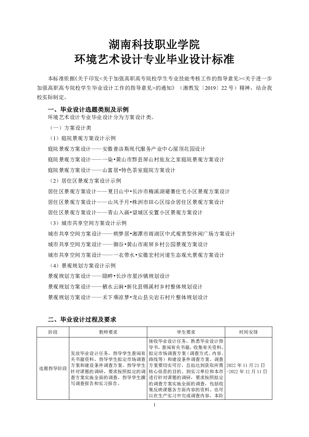 艺术设计学院环境艺术设计专业毕业设计标准(2023届)