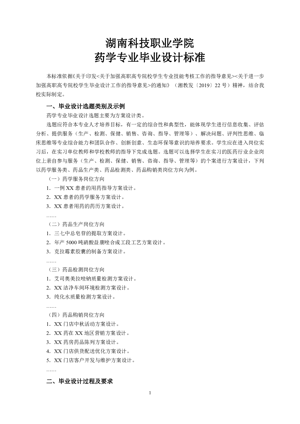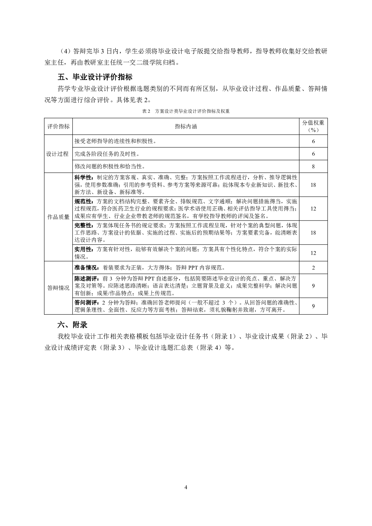 药学院药品质量与安全专业毕业设计标准(2023届)