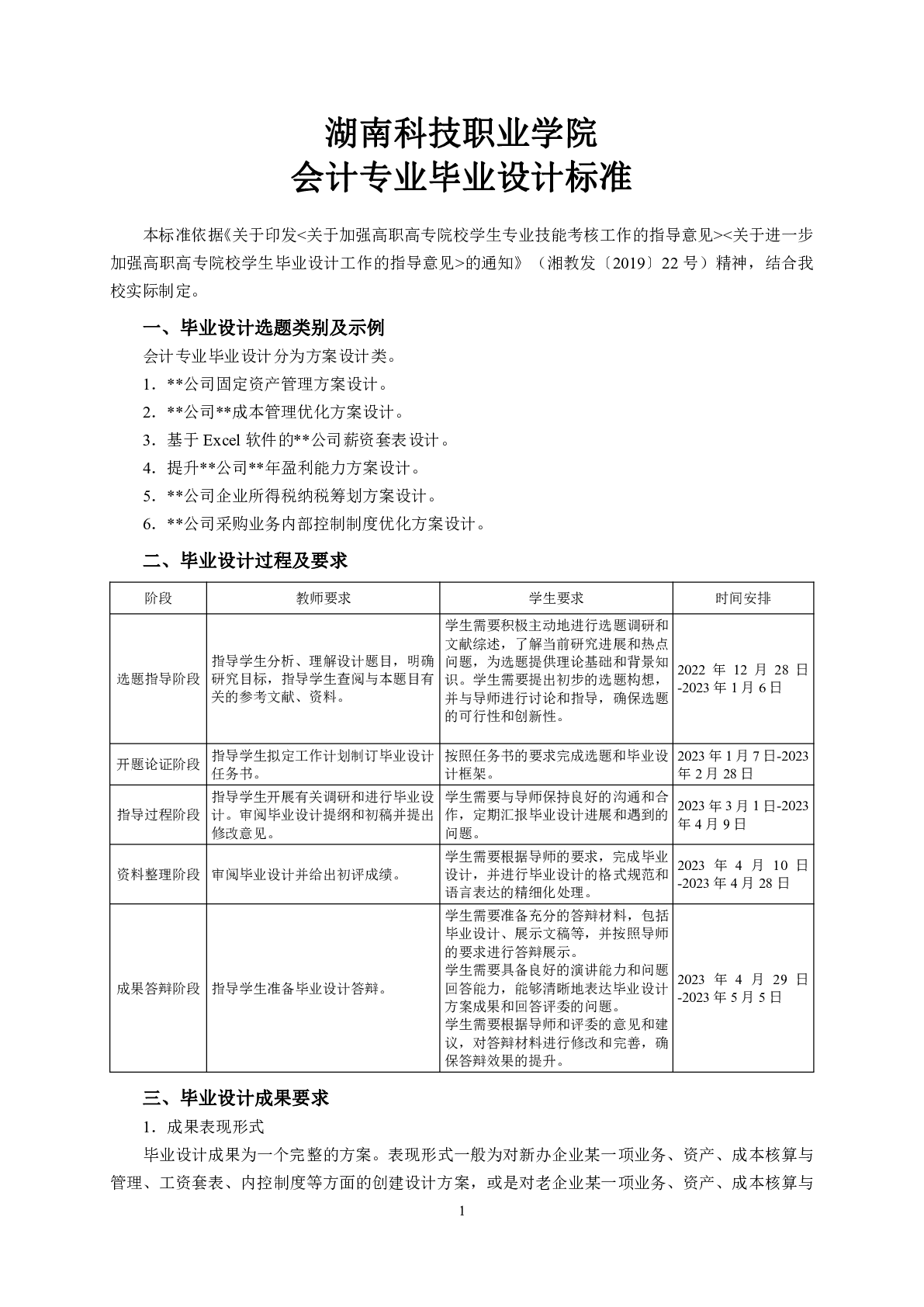 2023届毕业设计标准