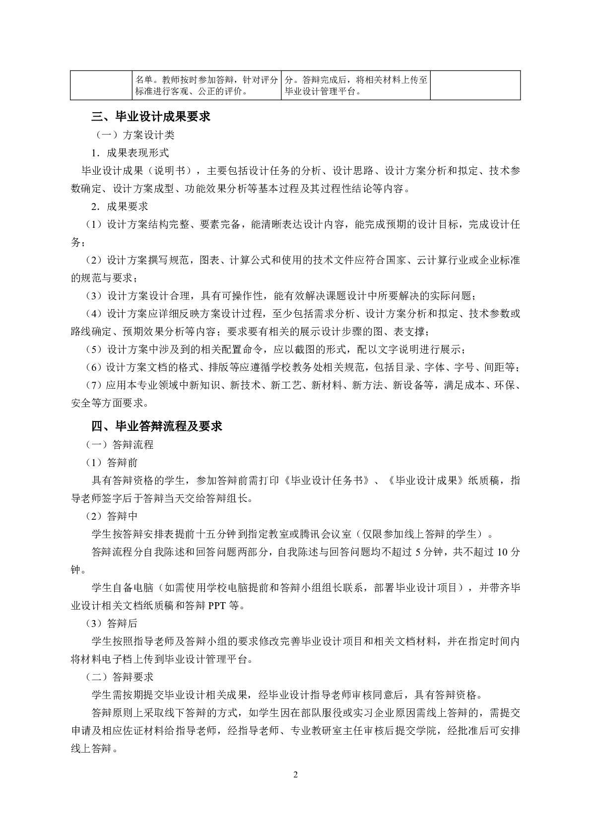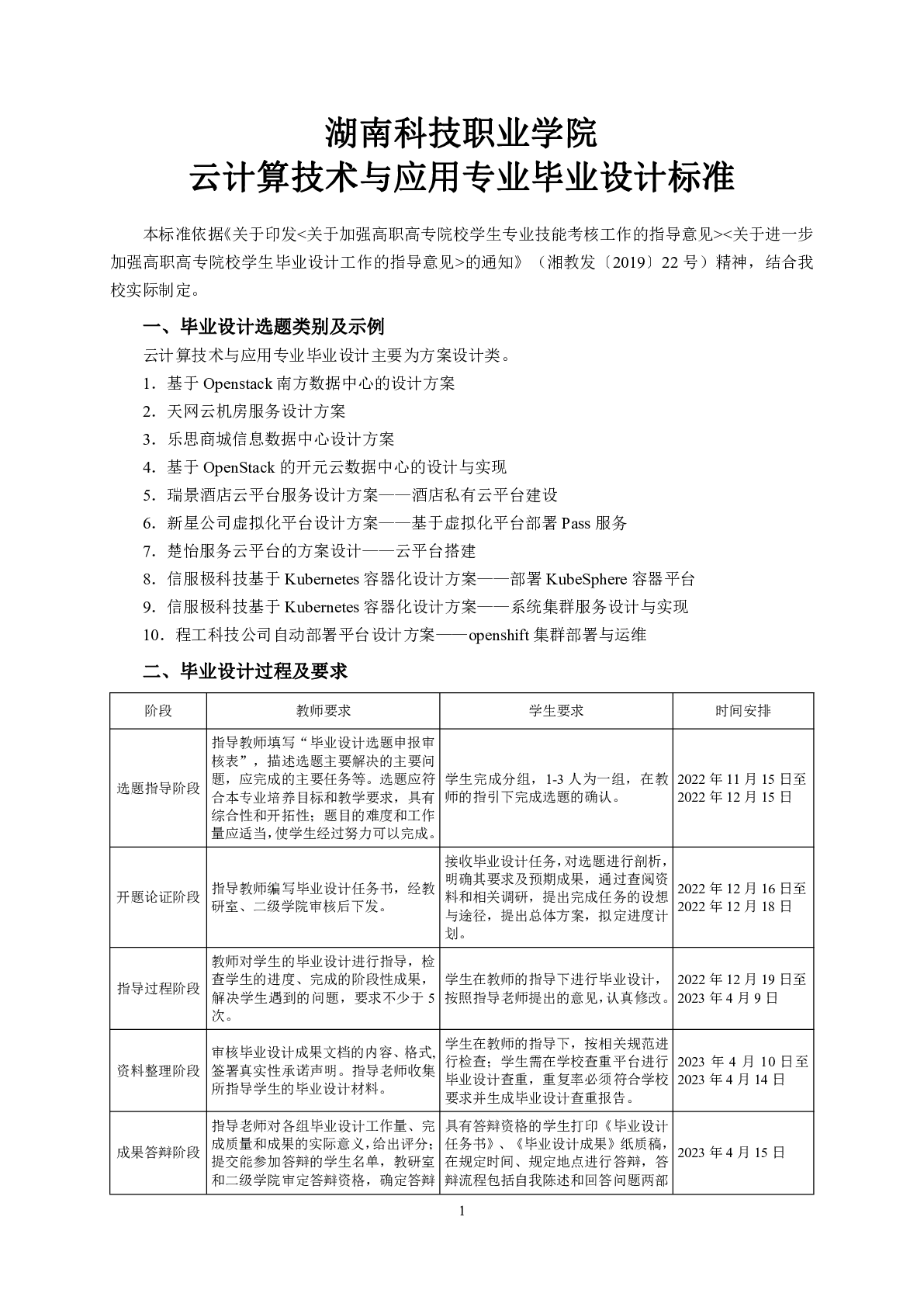 软件学院云计算技术与应用专业毕业设计标准(2023届)