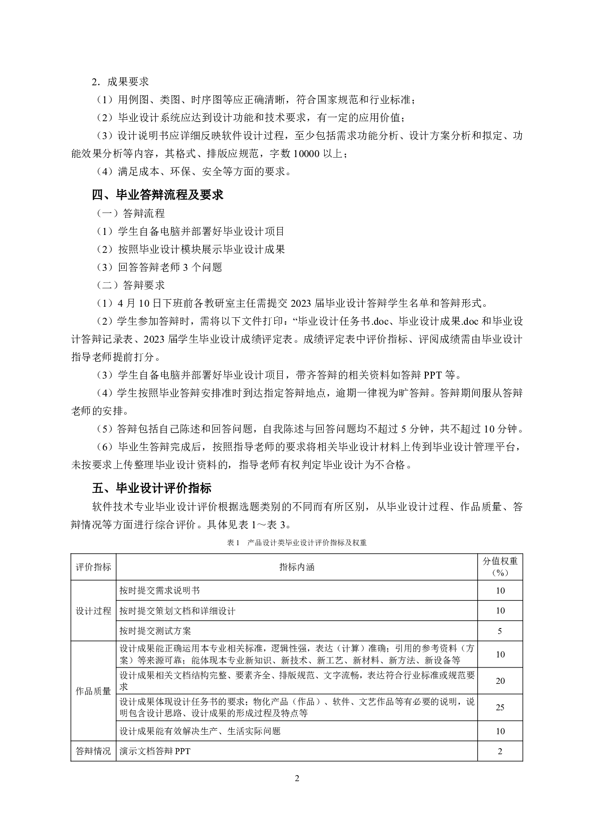 2023届毕业设计标准
