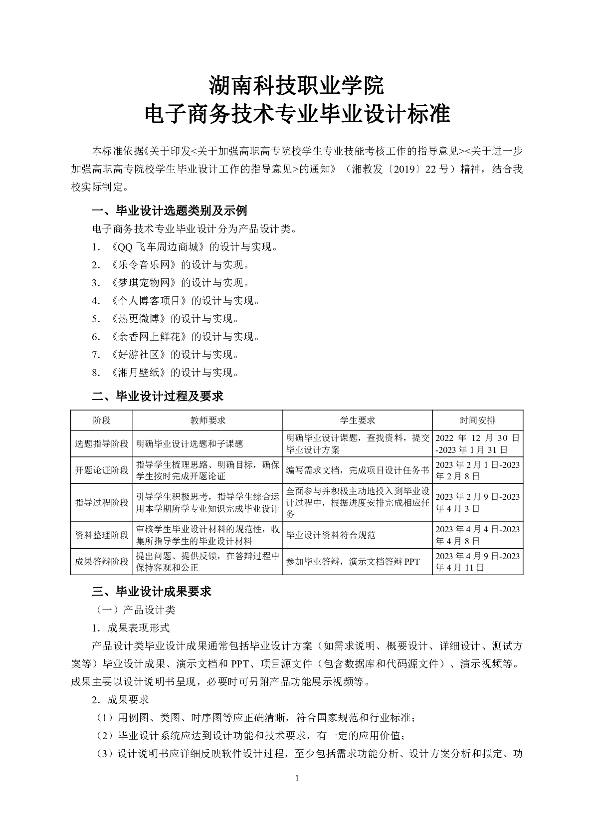 软件学院电子商务技术专业毕业设计标准(2023届)