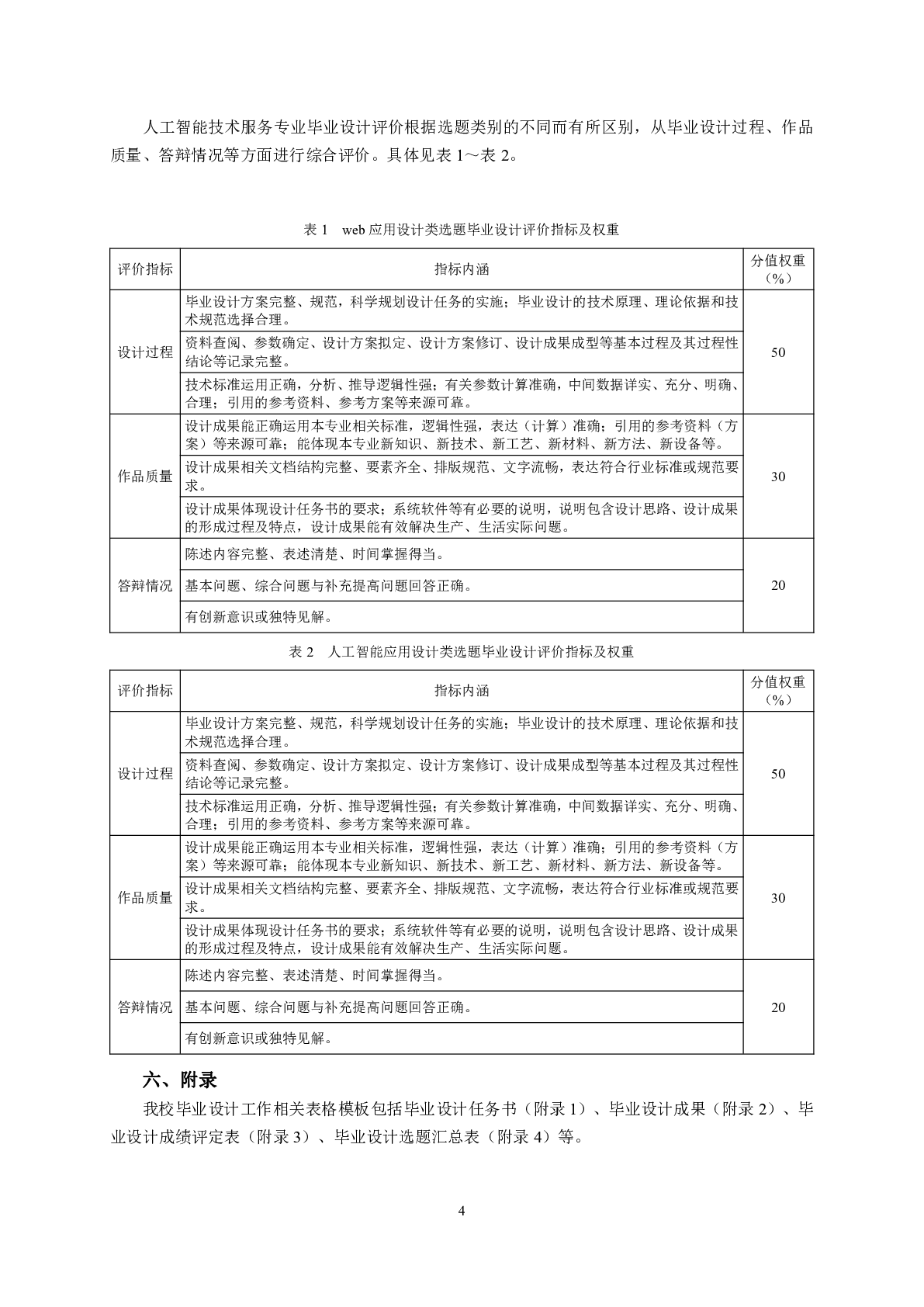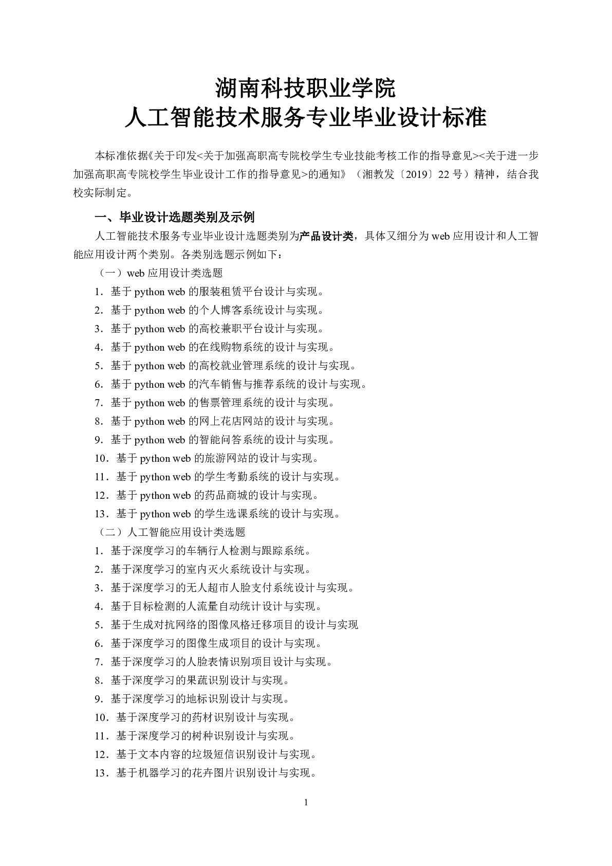 人工智能学院人工智能技术服务专业毕业设计标准(2023届)