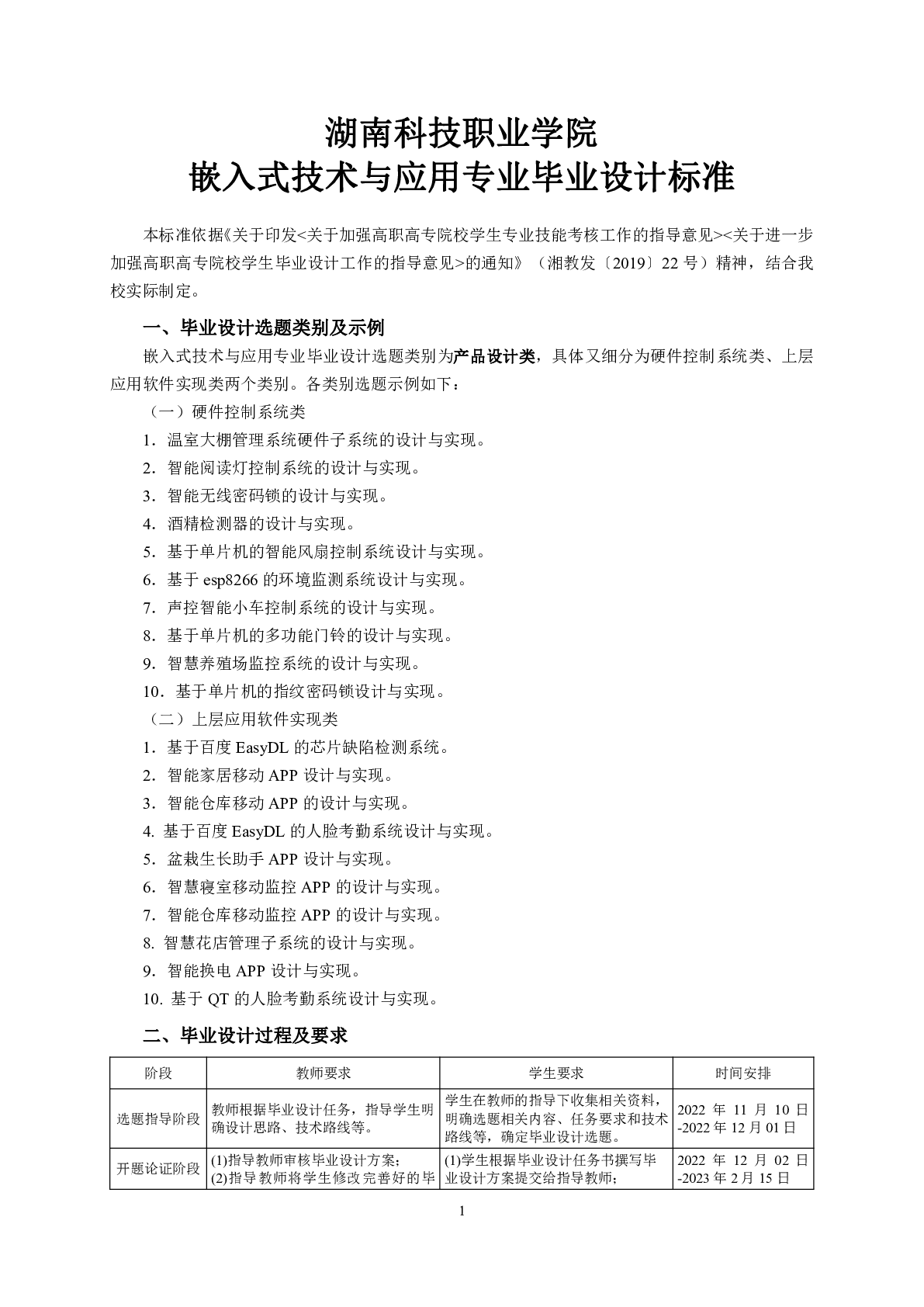 人工智能学院嵌入式技术与应用专业毕业设计标准(2023届)