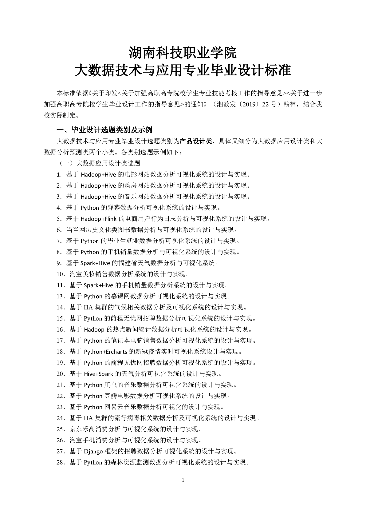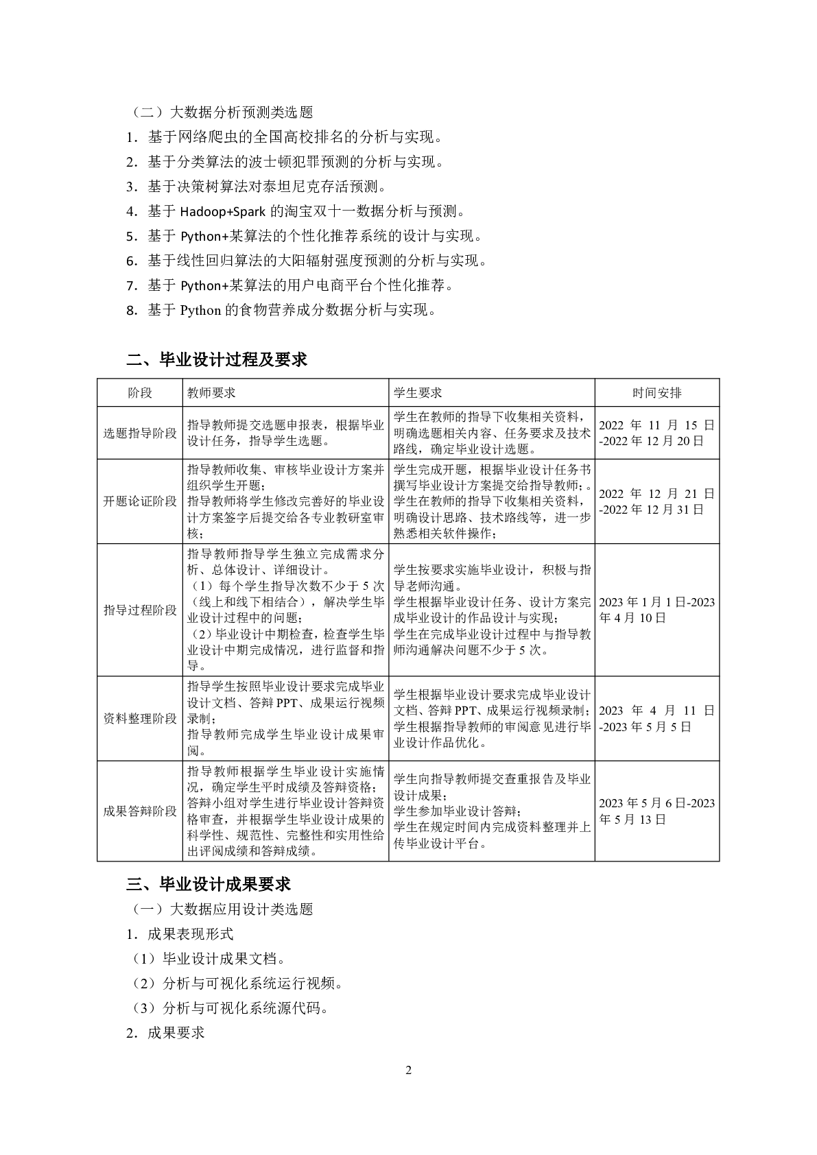 人工智能学院大数据技术与应用专业毕业设计标准(2023届)