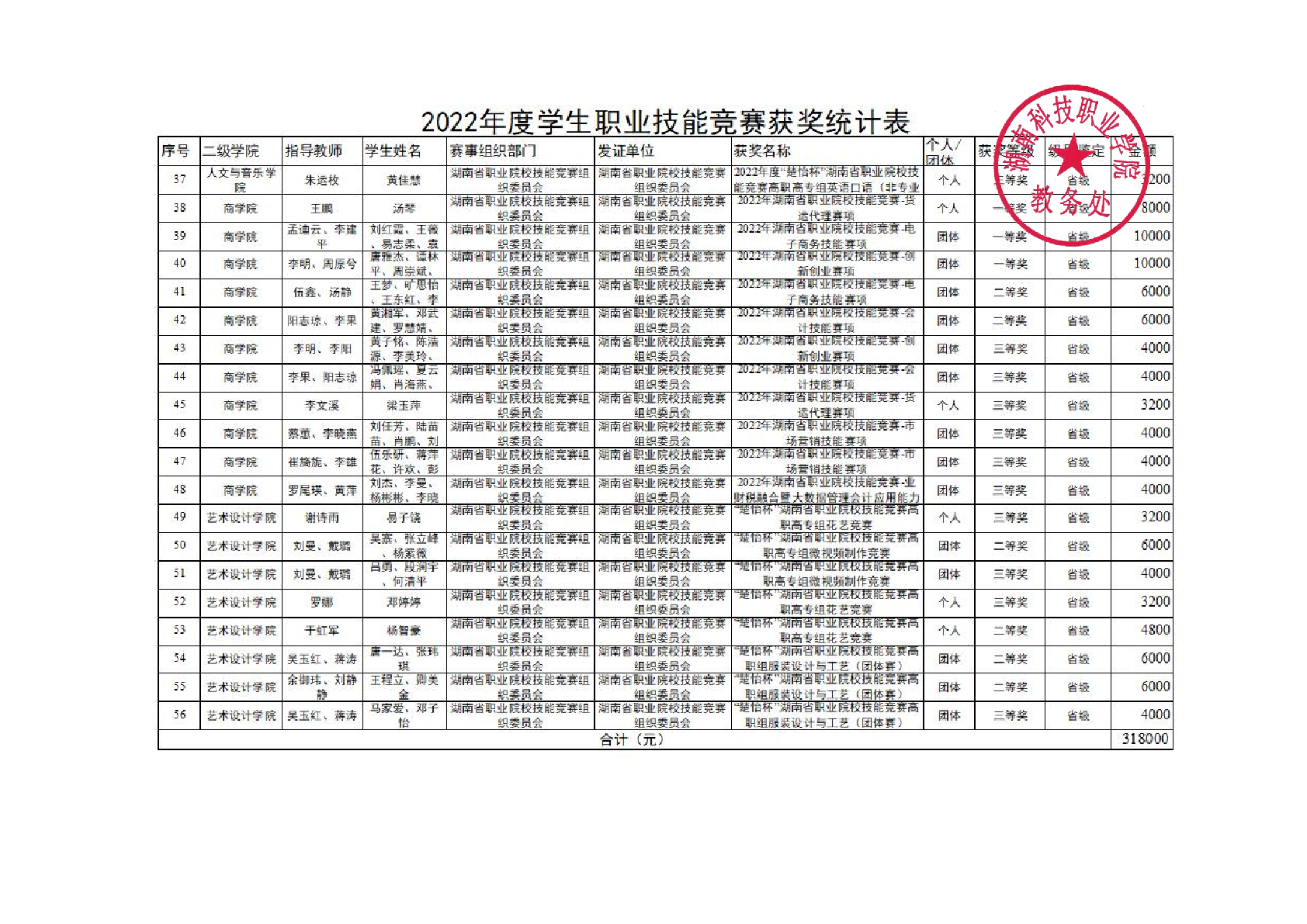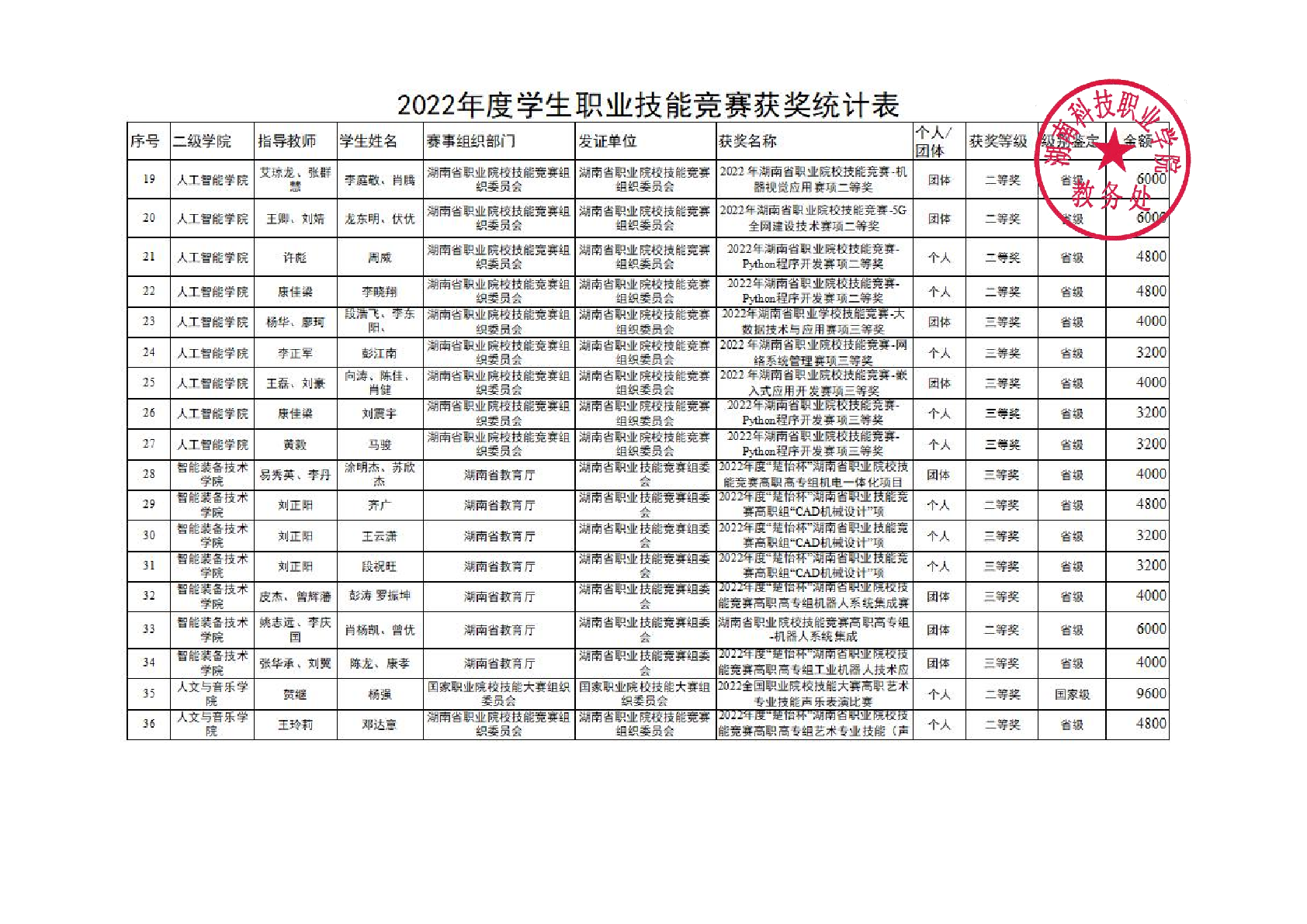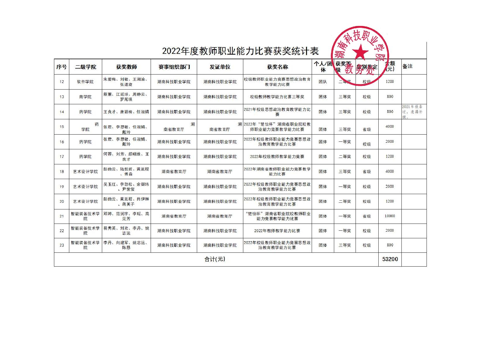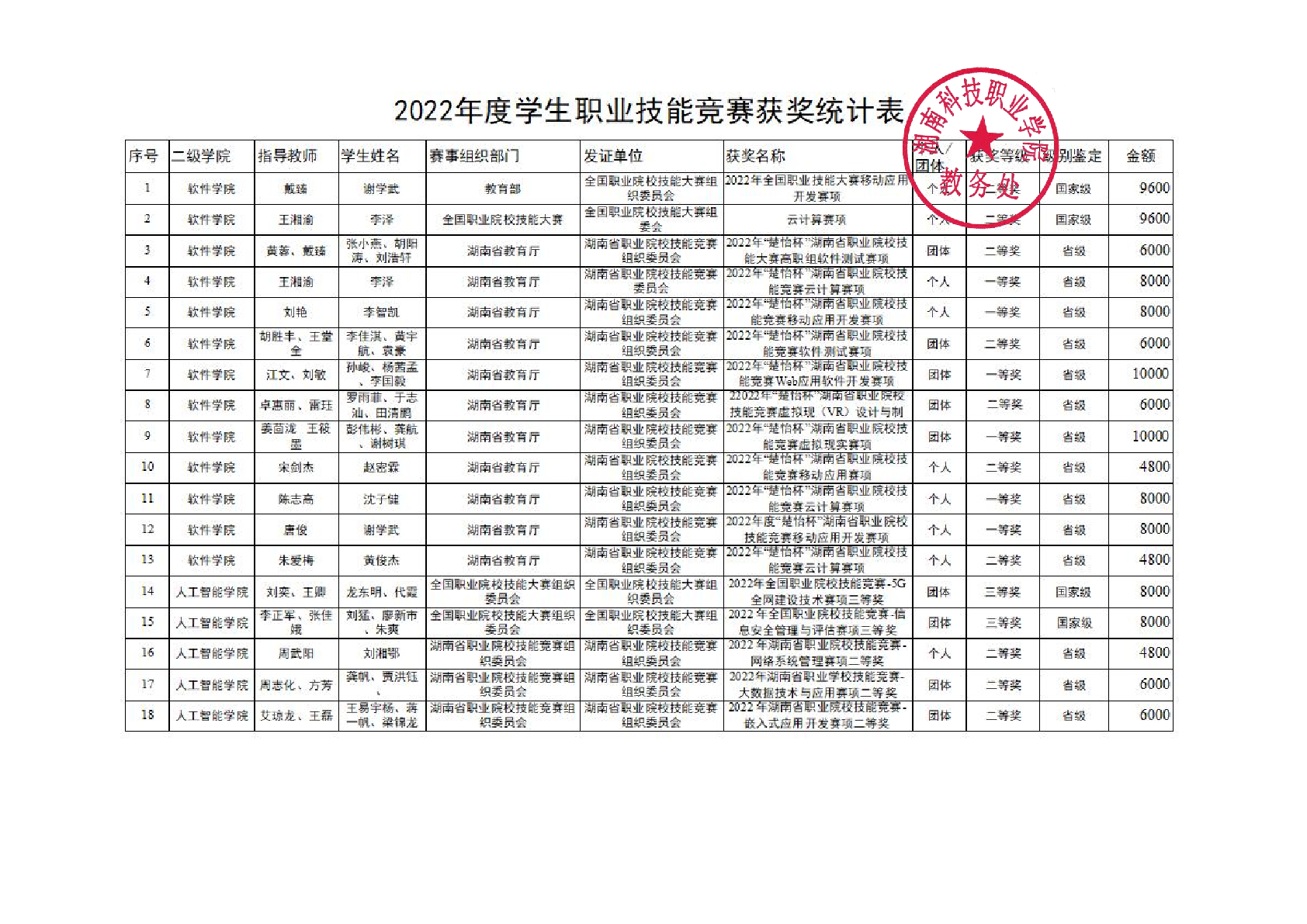 附件2:XX学院-2022年度湖南省职业院校技能竞赛获奖奖金分配与确认表.xls