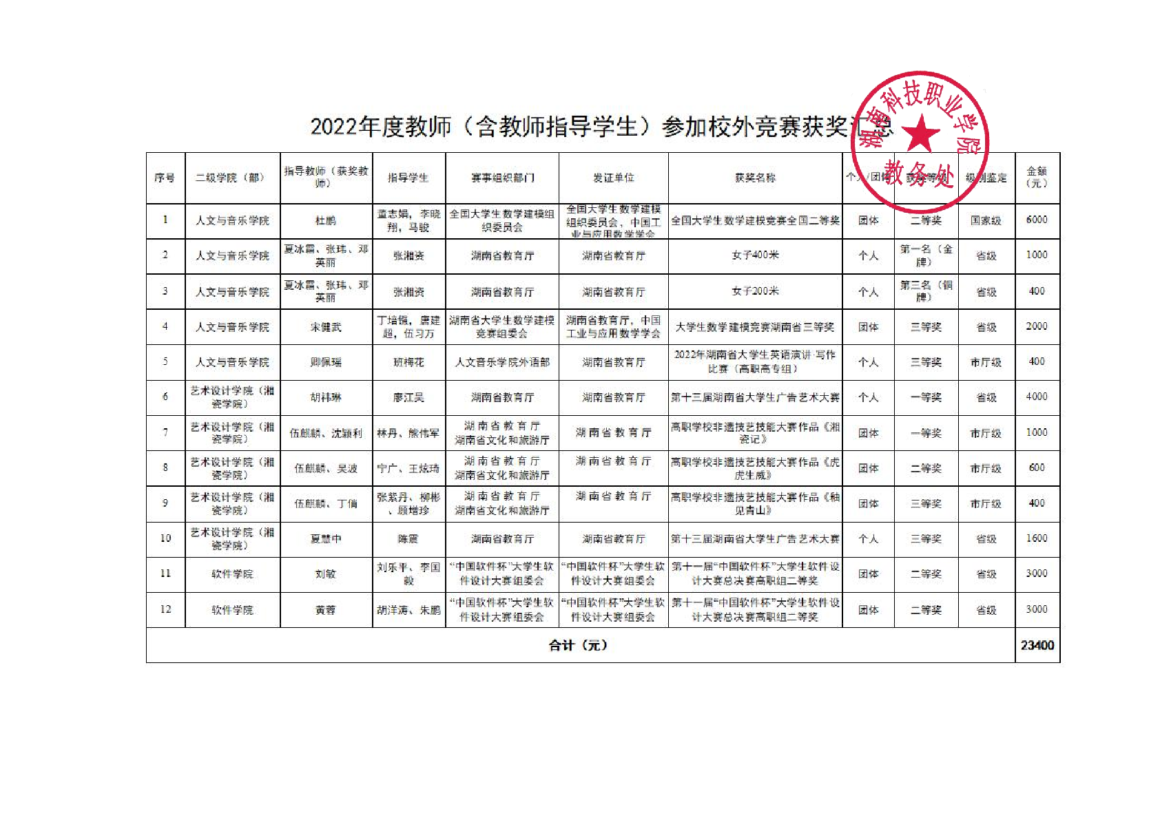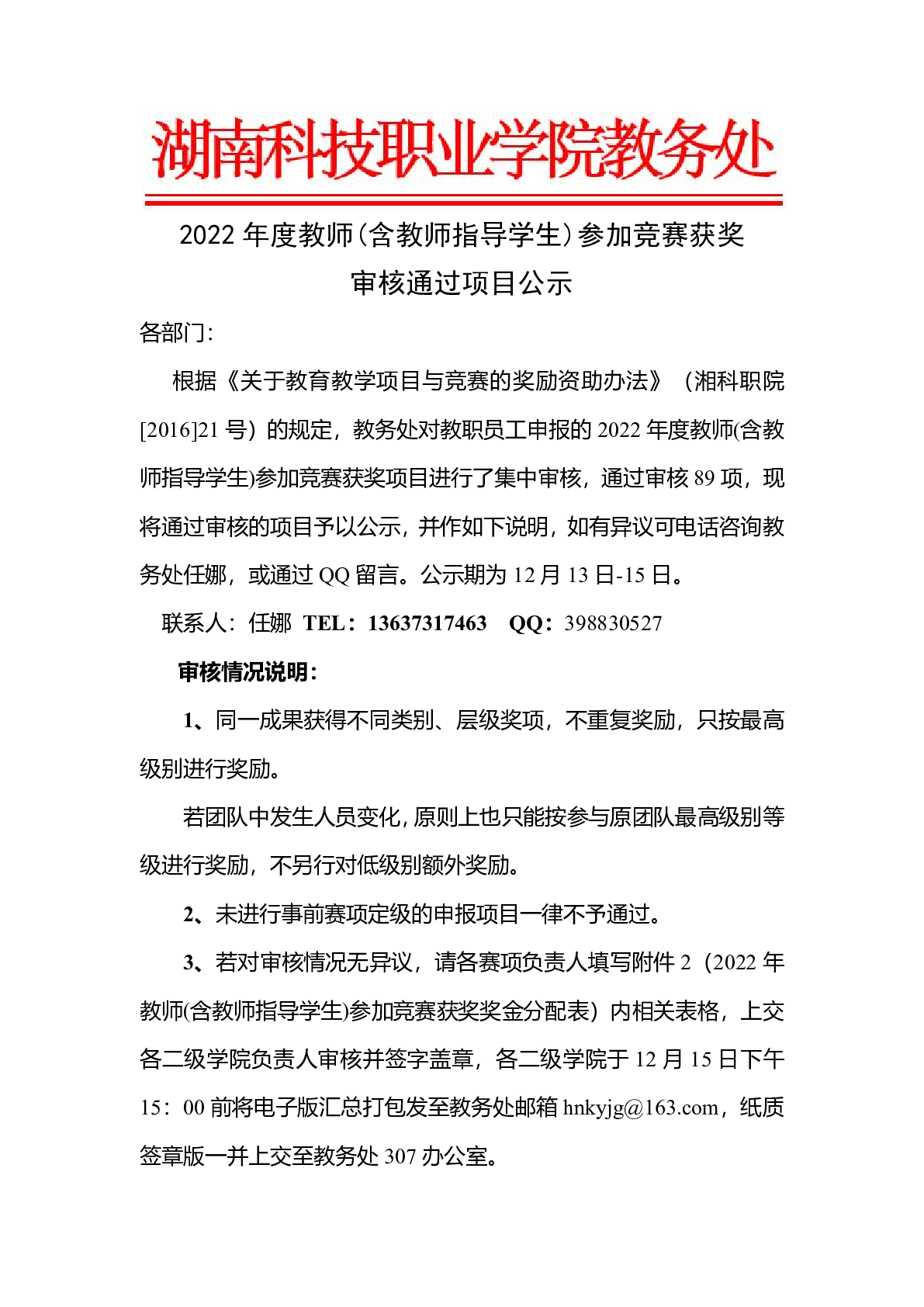 2022年度教师(含教师指导学生)参加竞赛审核通过项目公示