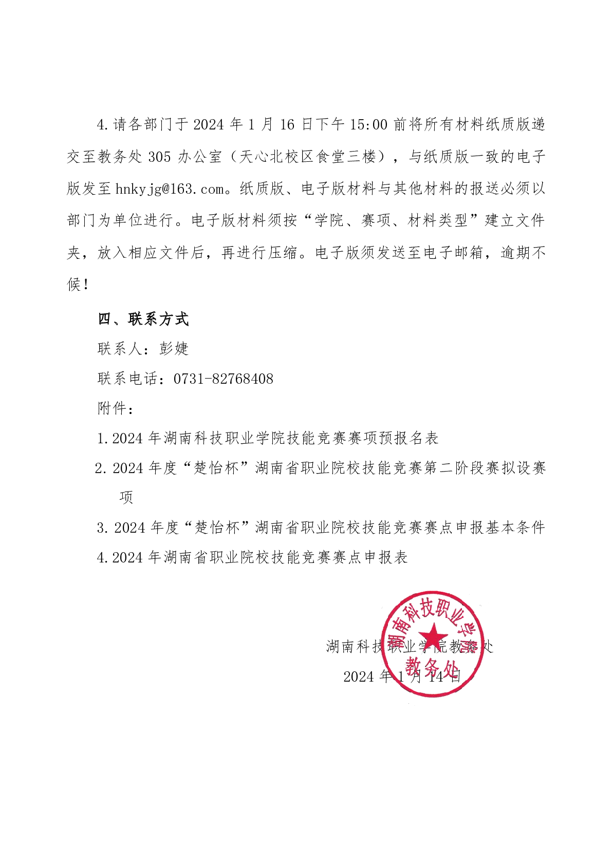 湖南科技职业学院关于补充征集2024年度“楚怡杯”湖南省职业院校技能竞赛(第二阶段)赛项专家、裁判员的通知