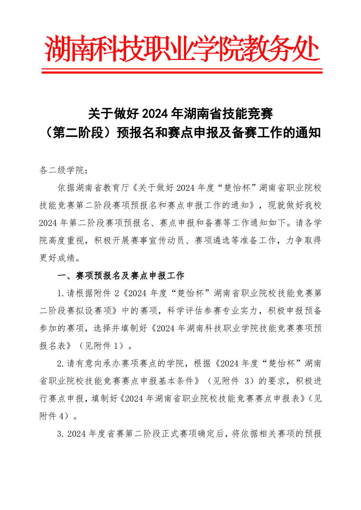 关于做好2024年湖南省职业院校技能竞赛(第二阶段)预报名和赛点申报及备赛工作的通知