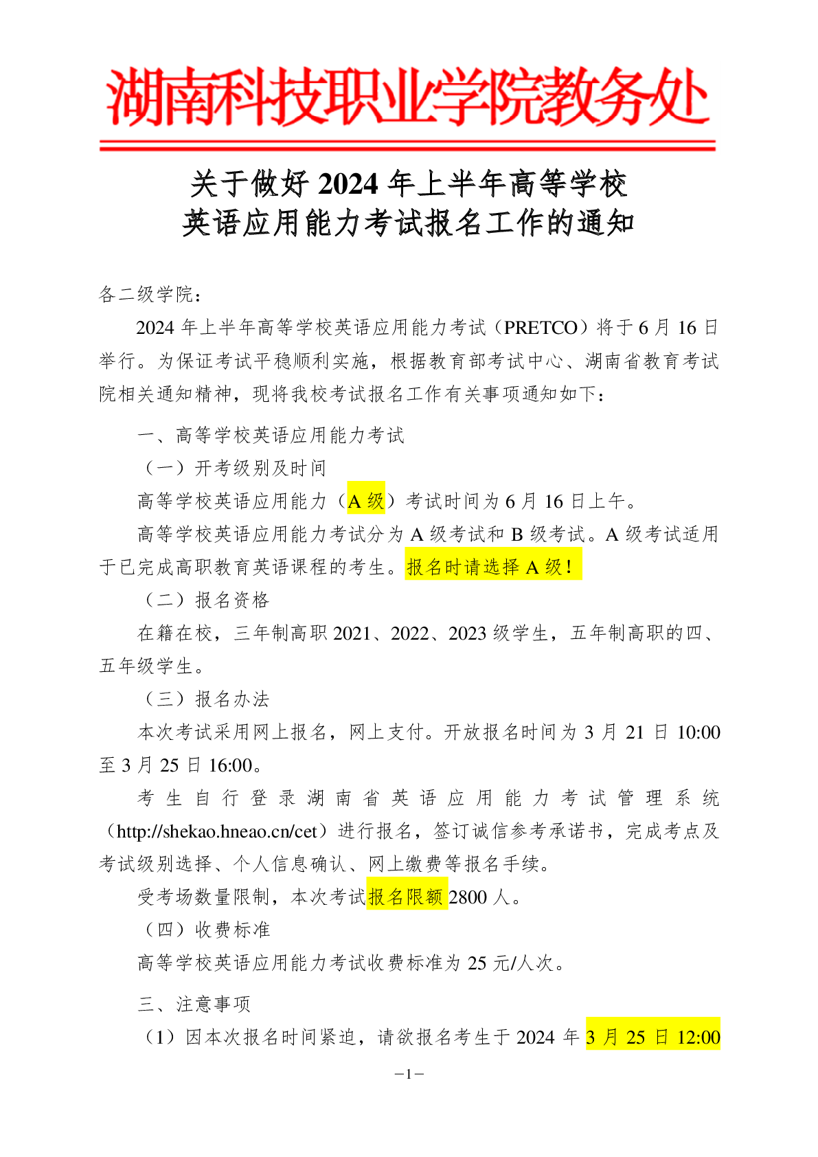 关于做好2024年上半年高等学校英语应用能力考试报名工作的通知