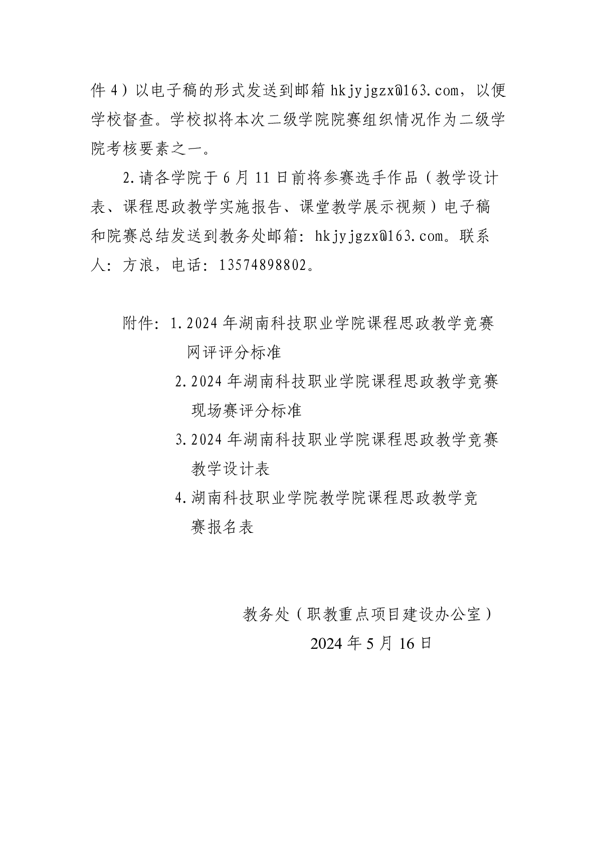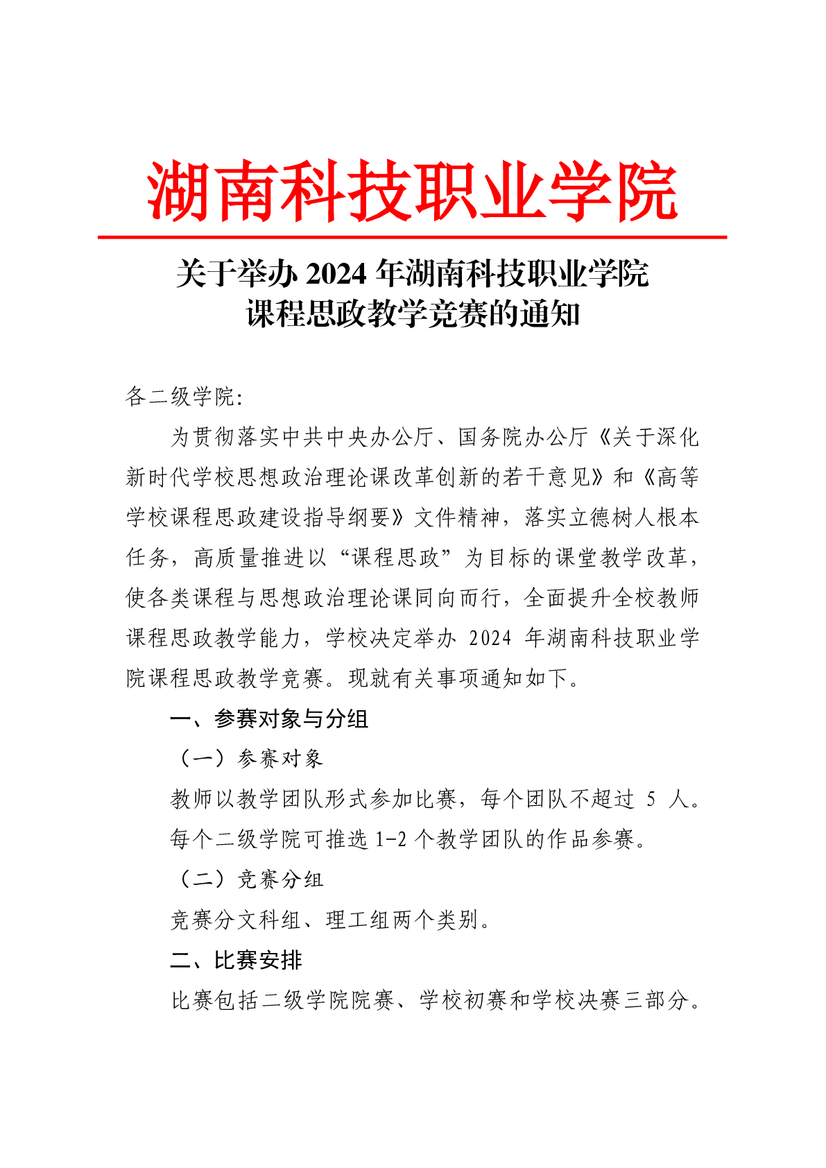 关于举办2024年湖南科技职业学院课程思政教学竞赛的通知