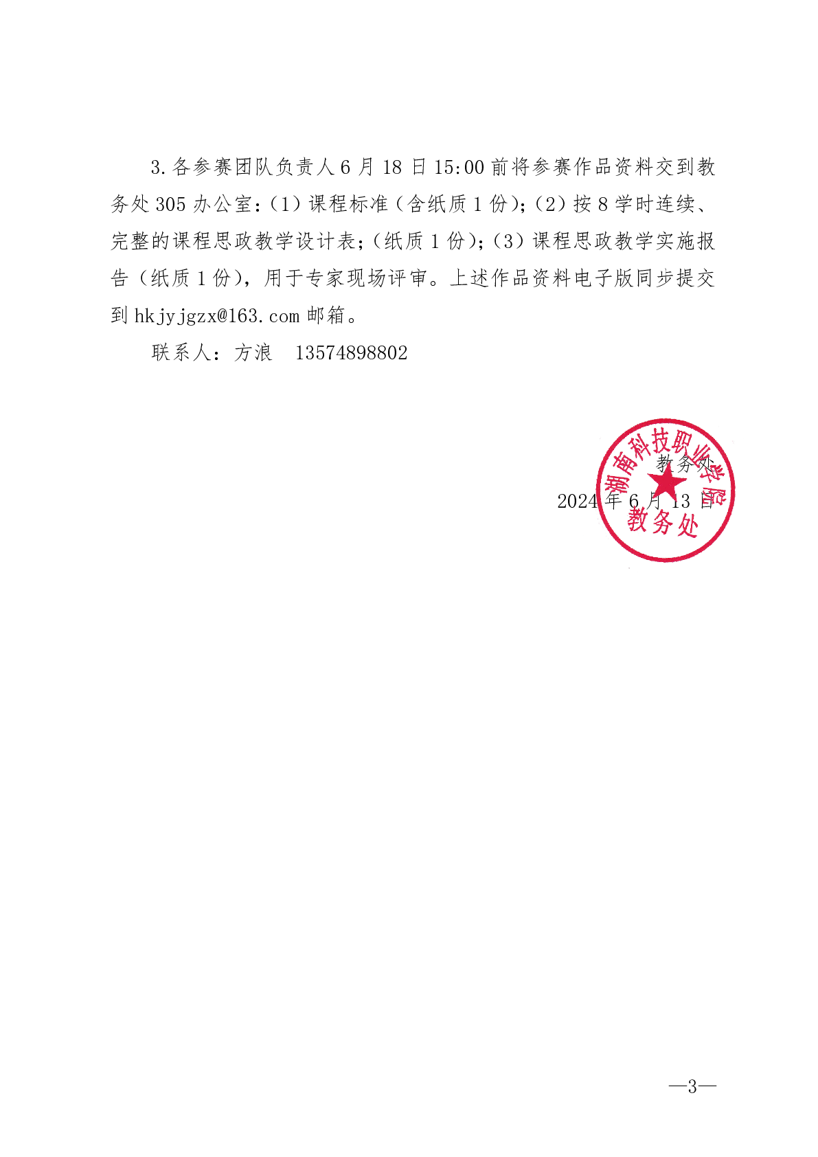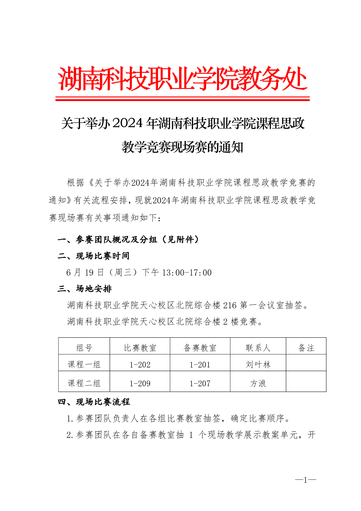 关于举办2024 年湖南科技职业学院课程思政 教学竞赛现场赛的通知