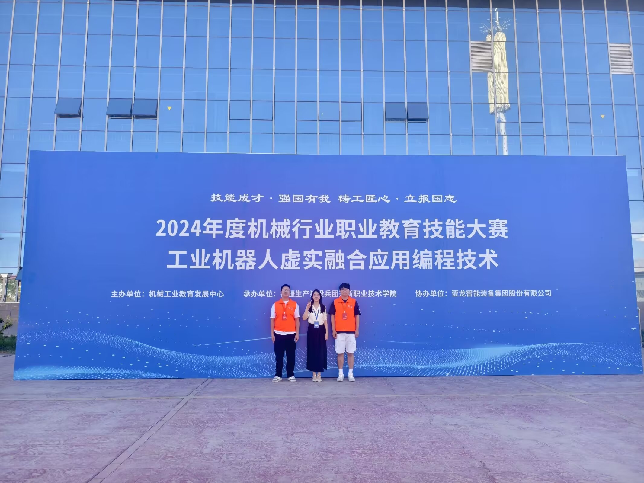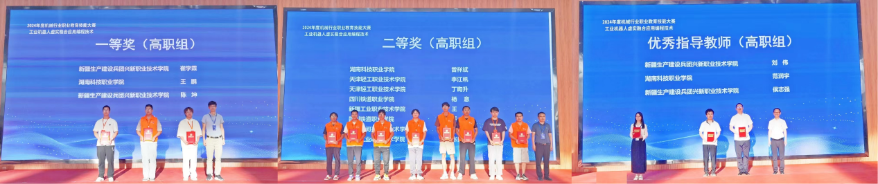 近日,2024年度机械行业职业教育技能大赛“工业机器人虚实融合应用编程技术”赛项全国总决赛在新疆兴新职业技术学院举行。我校智能装备技术学院学生王鹏、曾祥斌以卓越的表现和精湛的技能,成功摘取了工业机器人虚实融合应用编程技术赛项的一等奖与二等奖各1项,指导老师范润宇获“2024年度机械行业职业教育技能大赛优秀指导老师”荣誉。
