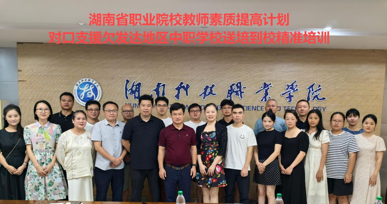 8月20日上午,由省教育厅主办、我校承办的职业院校教师素质提高计划2023年国家级培训“送培到校,精准培训”项目在我校雨花校区办公楼4楼第一会议室顺利开班。我校党委委员、副校长谭见君,智能装备学院院长陈立以及送培团队江波教授,吴玉红教授及江华瑶族自治县职业中专学校13名参训教师参加了开班仪式。开班仪式由教务处副处长胡君主持。