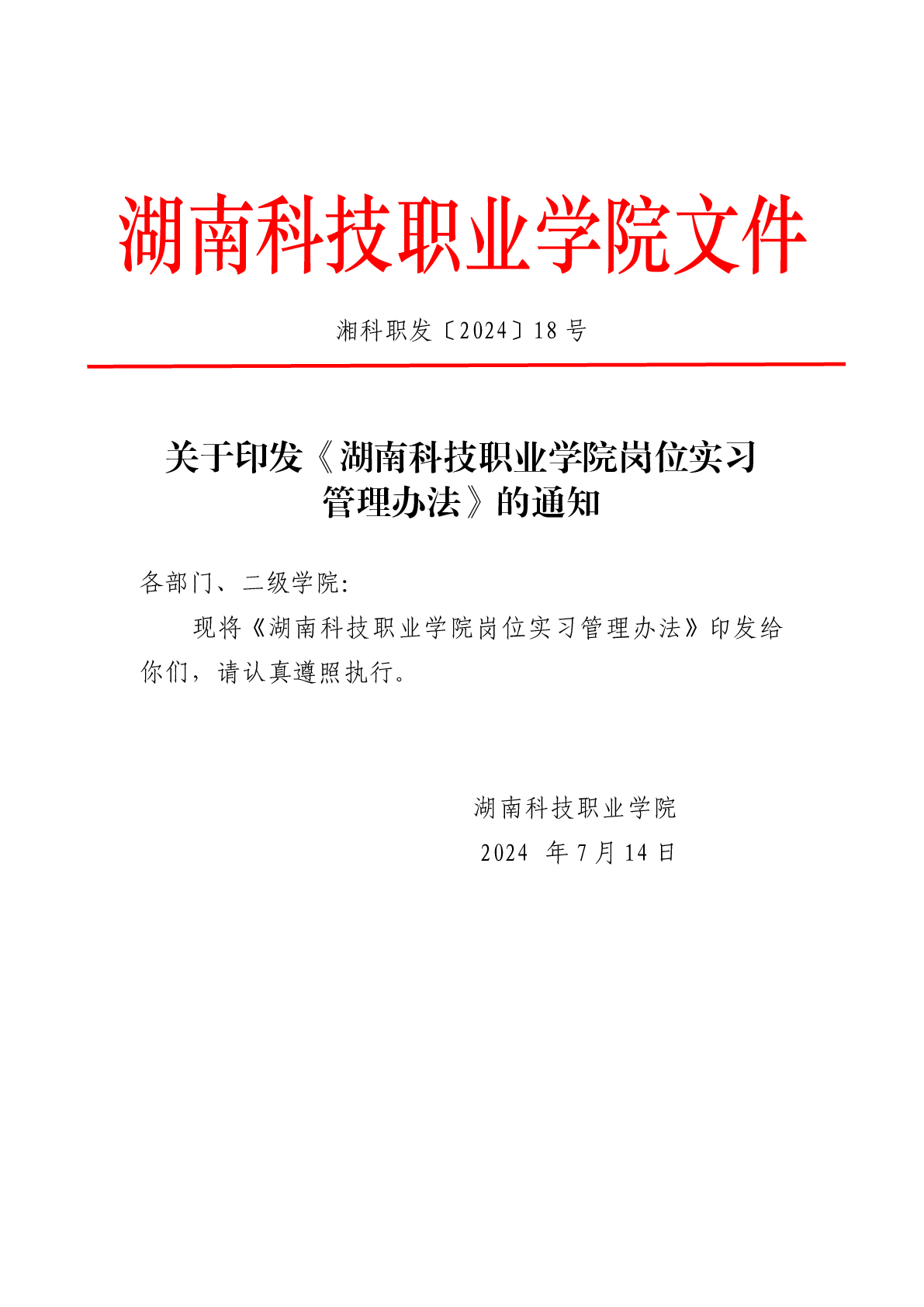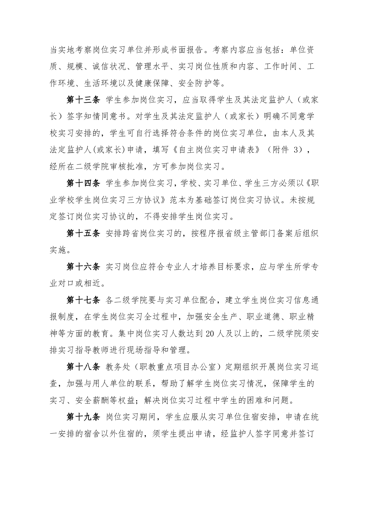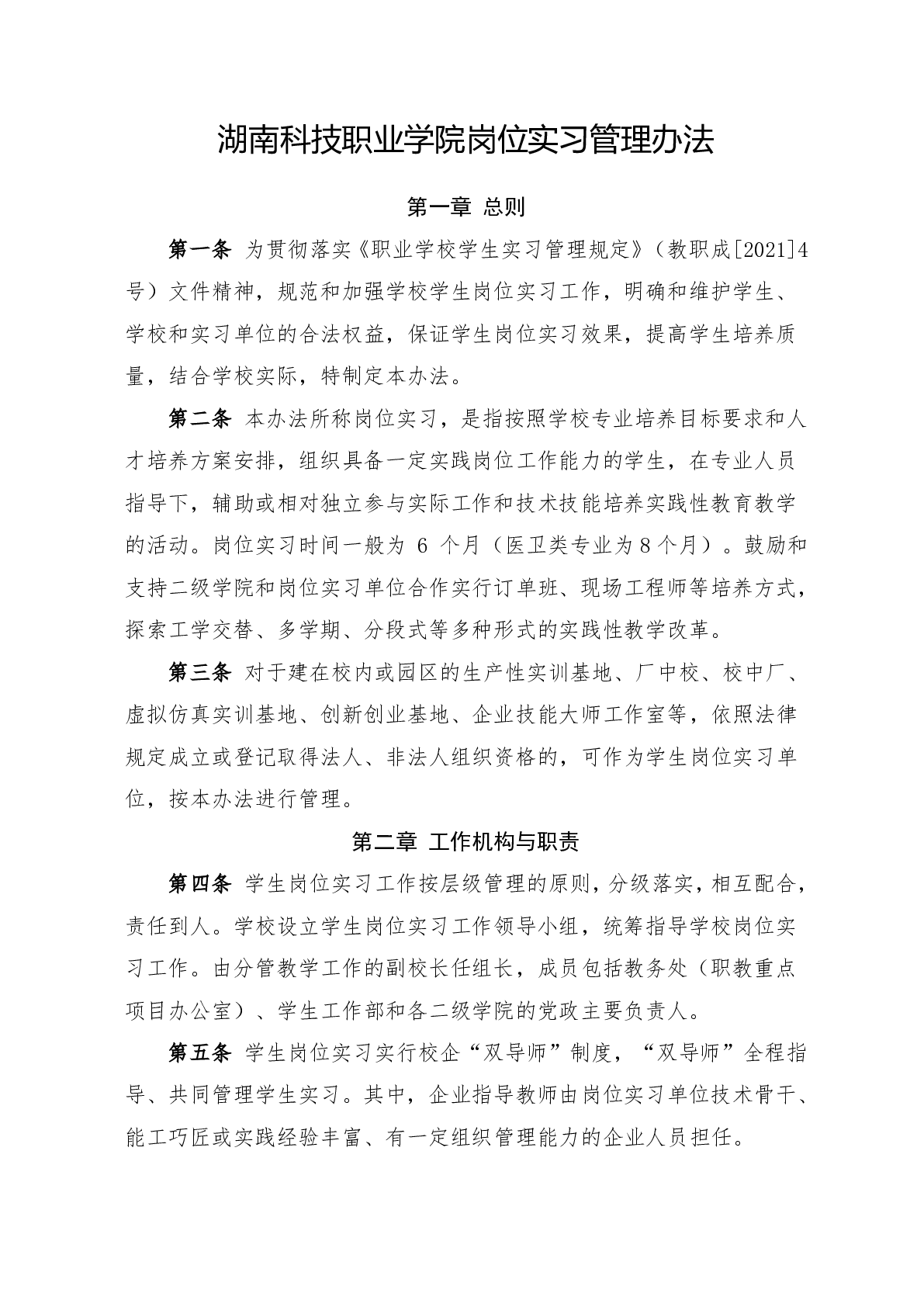 湖南科技职业学院岗位实习管理办法
