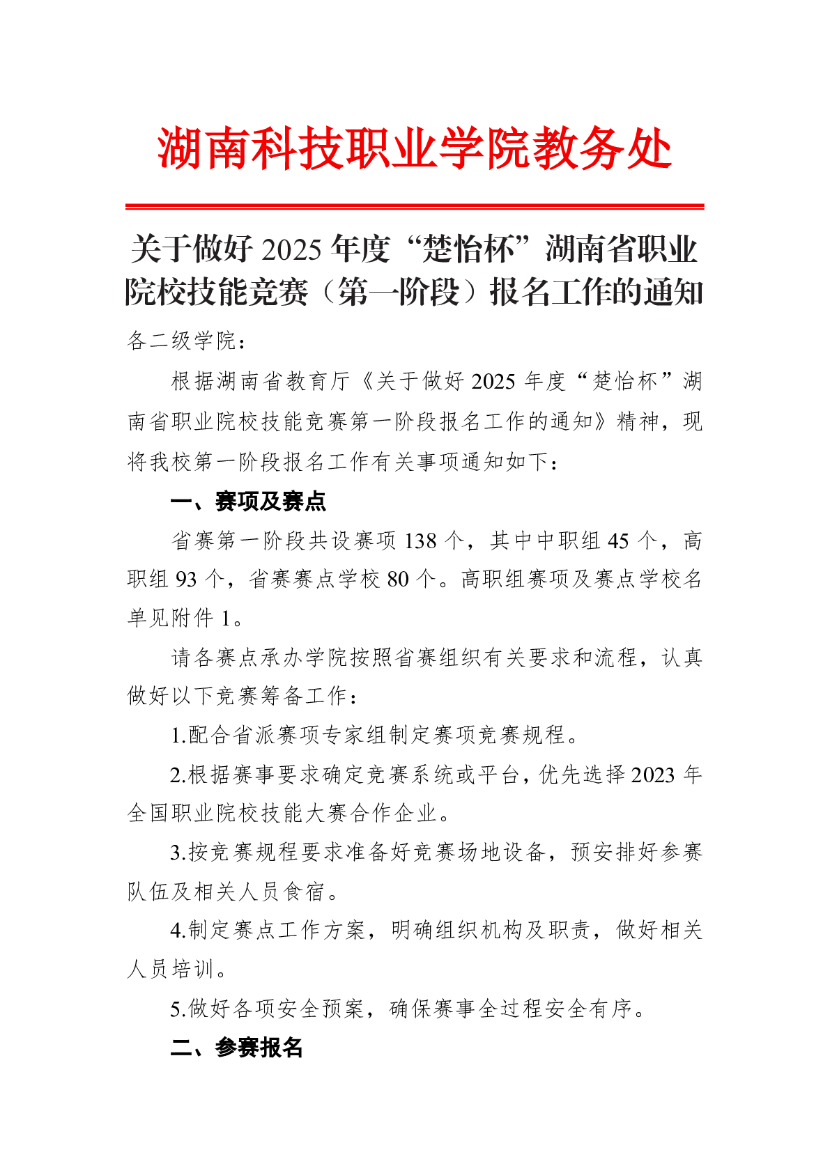 关于做好 2025 年度“楚怡杯”湖南省职业院校技能竞赛(第一阶段)报名工作的通知
