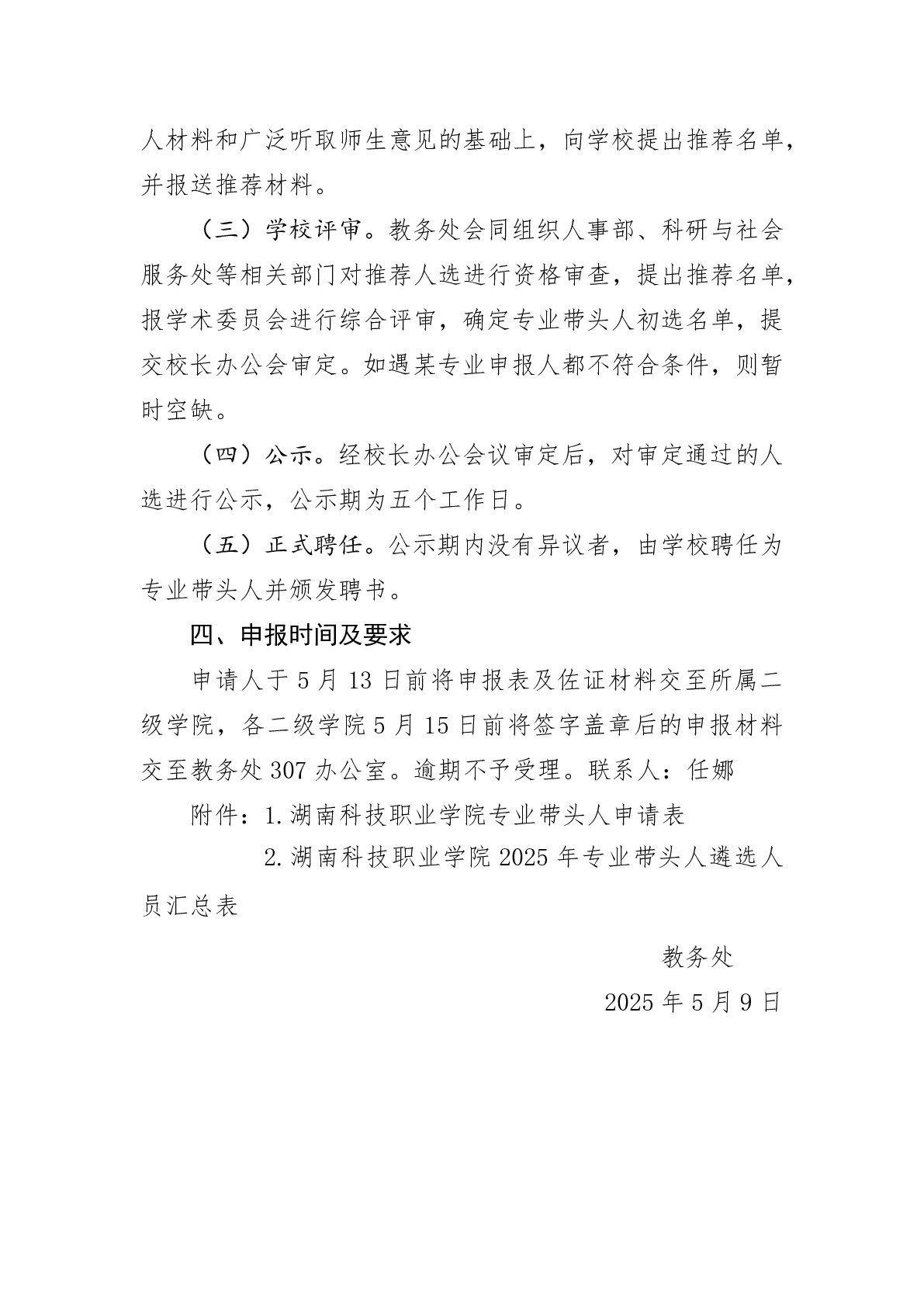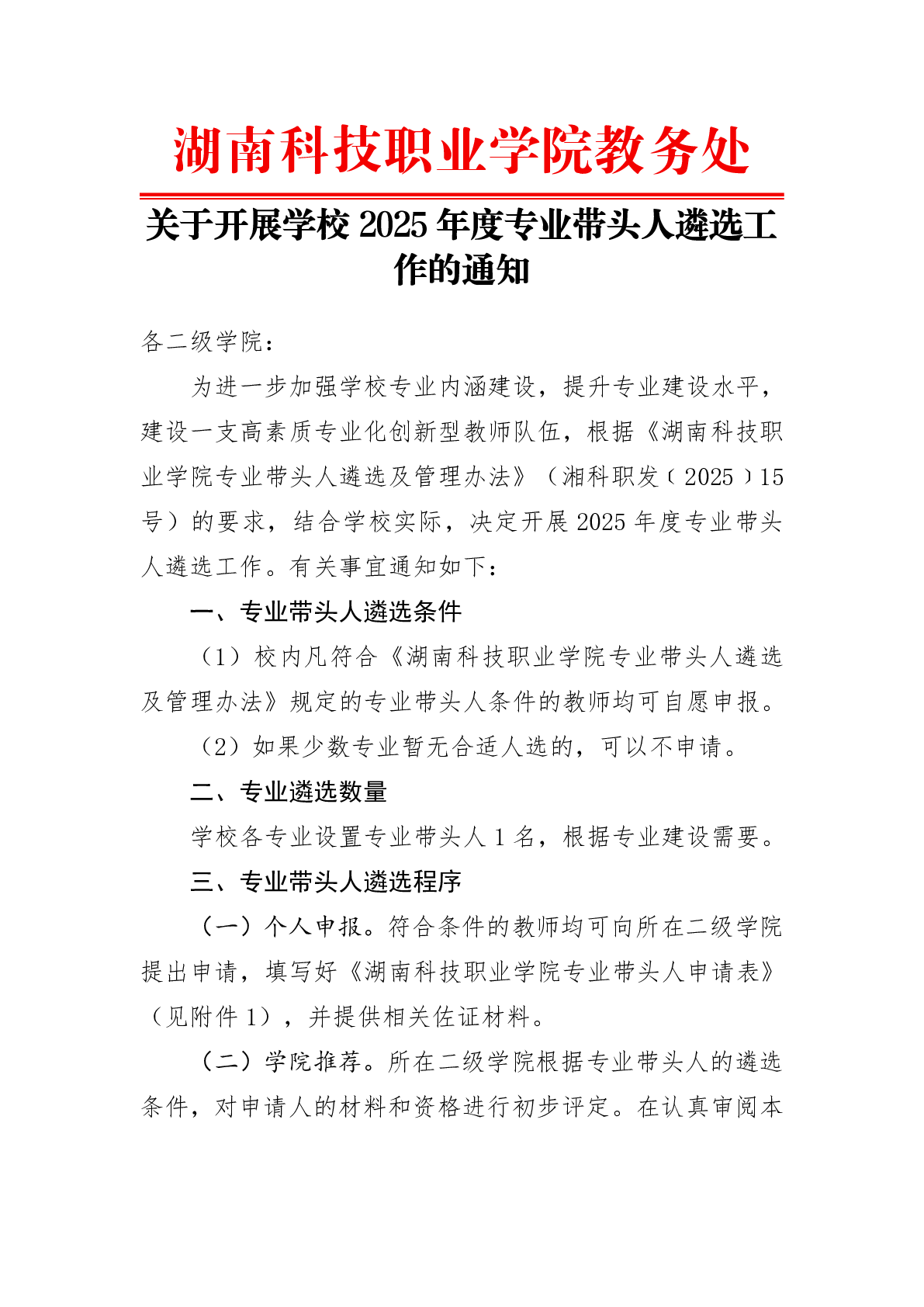 关于开展学校2025年专业带头人遴选工作的通知