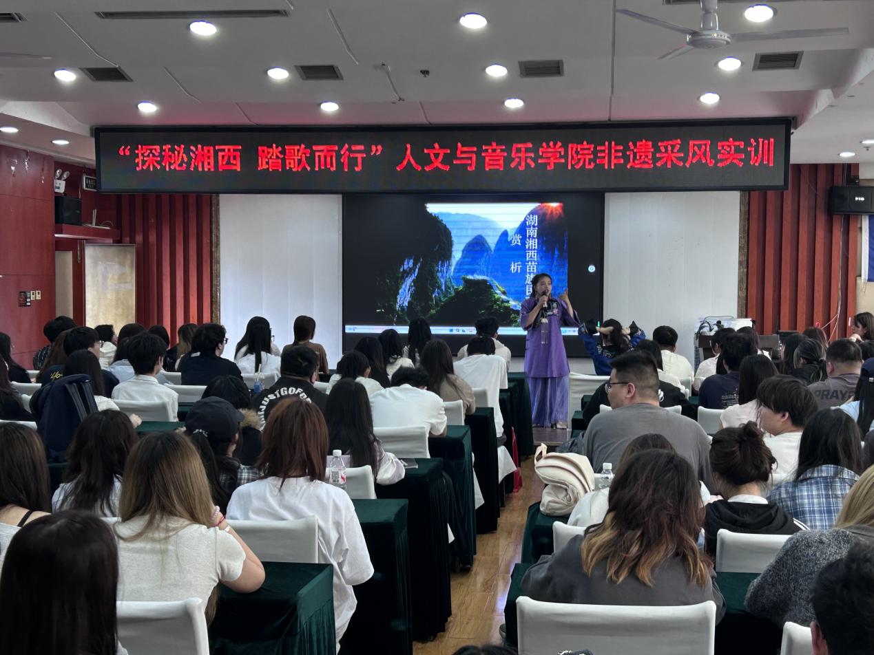湘西地区拥有丰富多样且独具特色的非物质文化遗产,从古老的少数民族音乐、舞蹈到独特的民俗技艺,都蕴含着深厚的历史文化价值和民族精神内涵。5月6日—16日学院师生一行130多人开展了湘西非遗文化传承采风实训之旅。此次实训邀请了湘西州多名国家级、省级非遗传承人,为学生们带来了一场场非遗文化盛宴。师生们系统的学习了土家族苗族山歌号子、摆手舞、咚咚喹、苗鼓等多项非遗音乐文化,在传承人手把手的教导下,感受非遗文化的独特魅力与深厚底蕴。通过此次实训,推动了学院的人才培养与地方音乐文化传承紧密结合,学生们不仅提升了专业技能,更增强了对传统文化传承与保护的责任感和使命感,将受益终身。