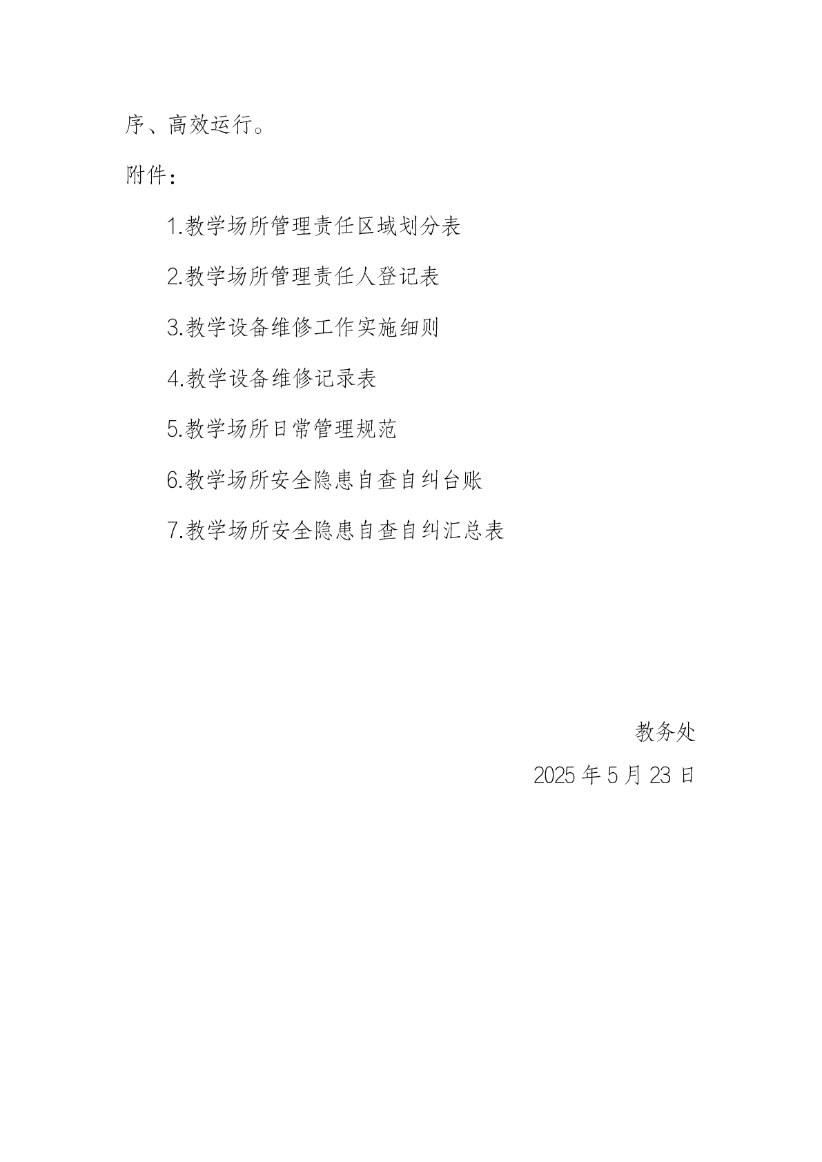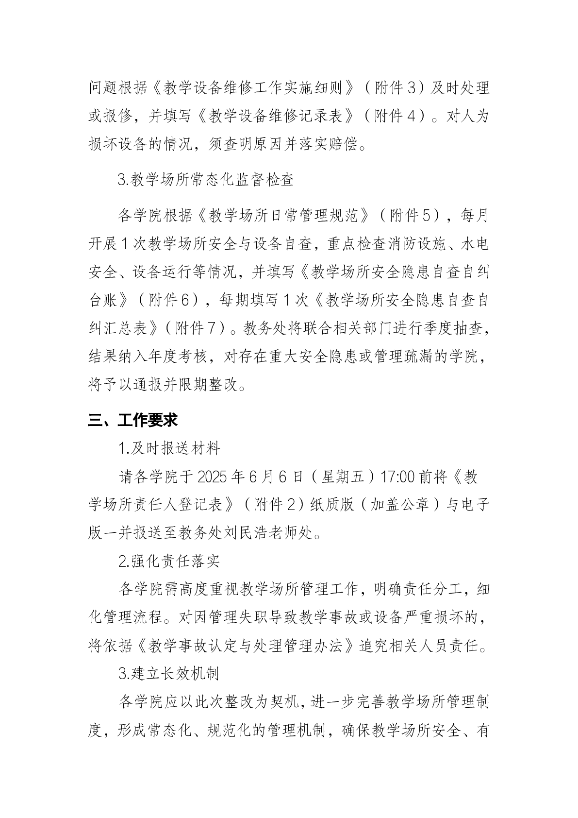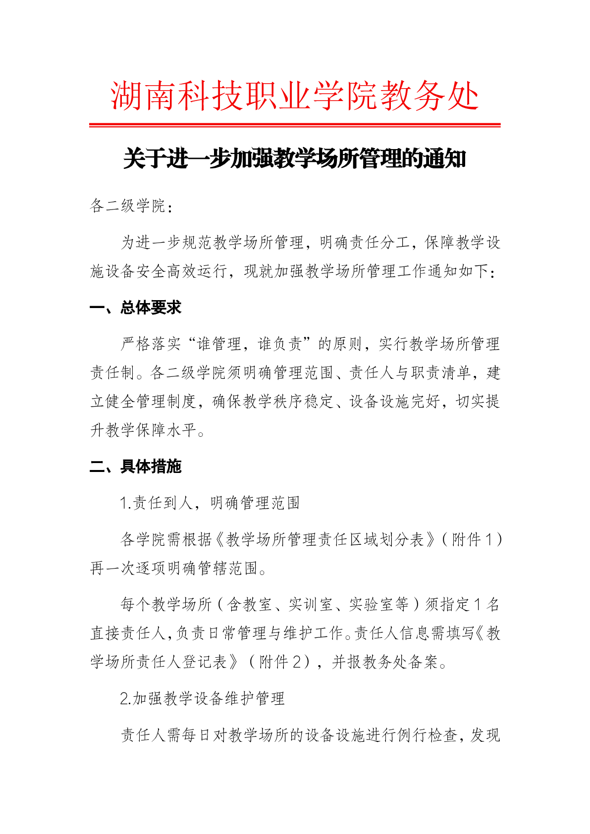 关于进一步加强教学场所管理的通知