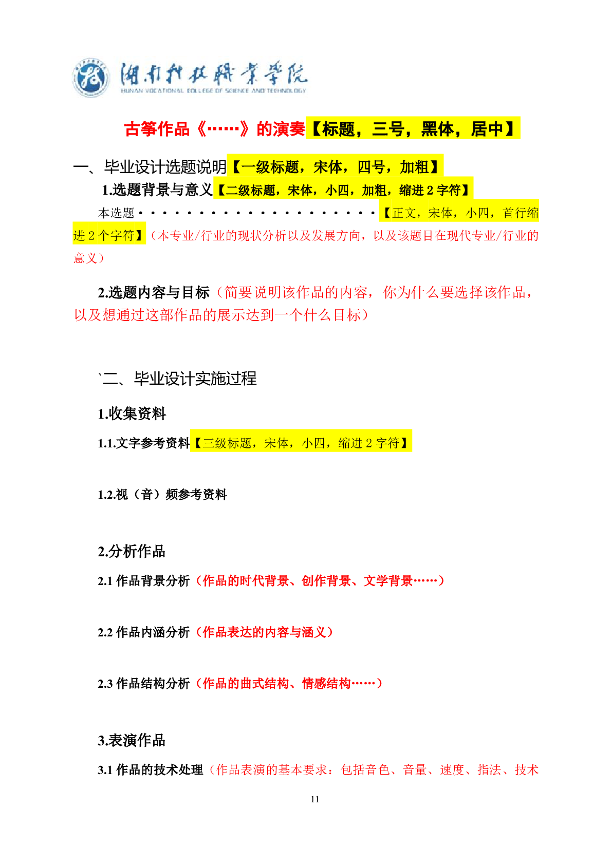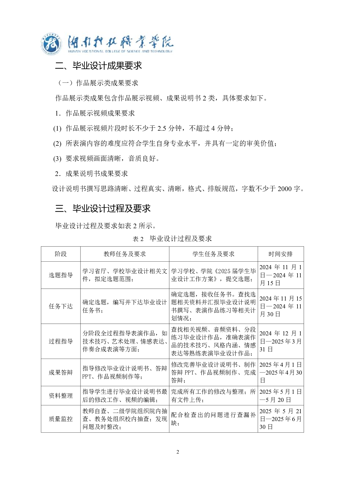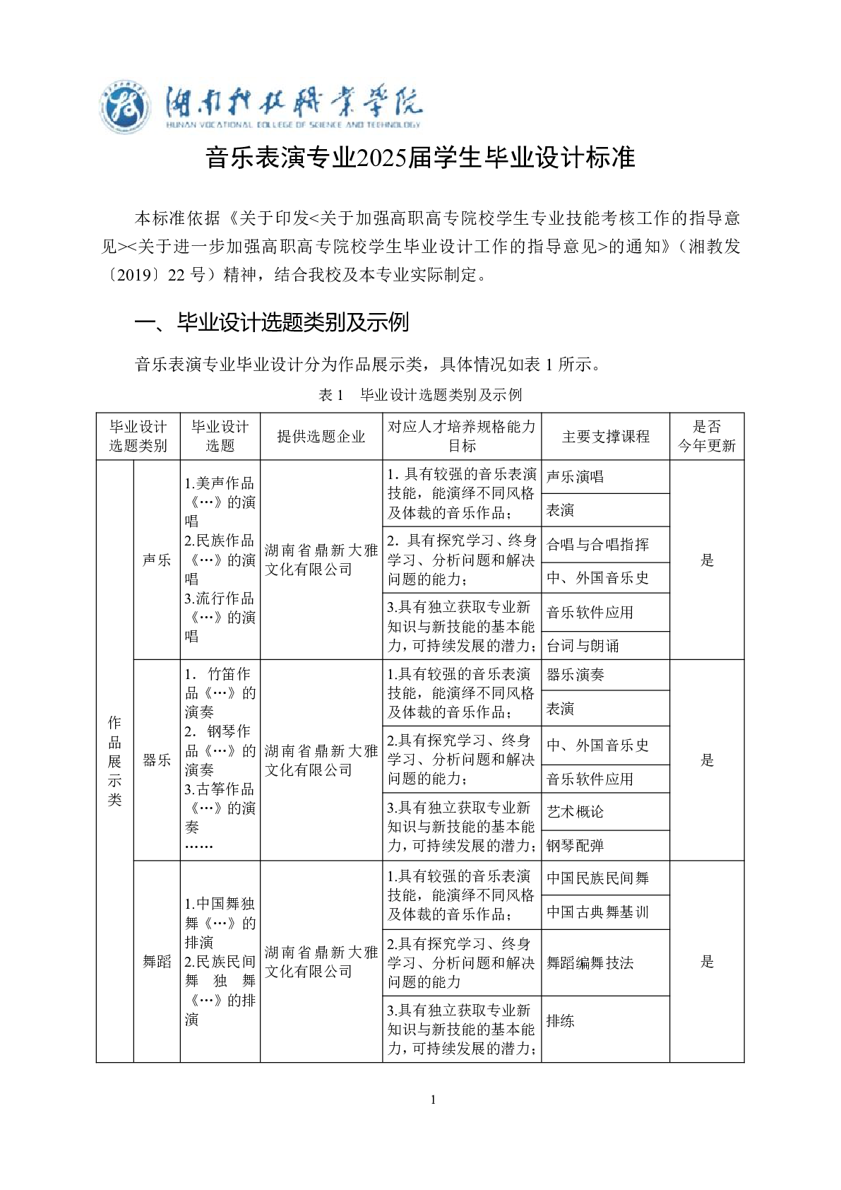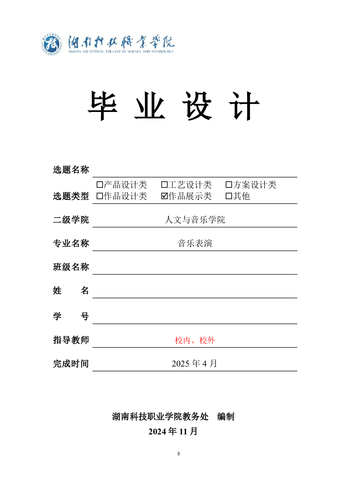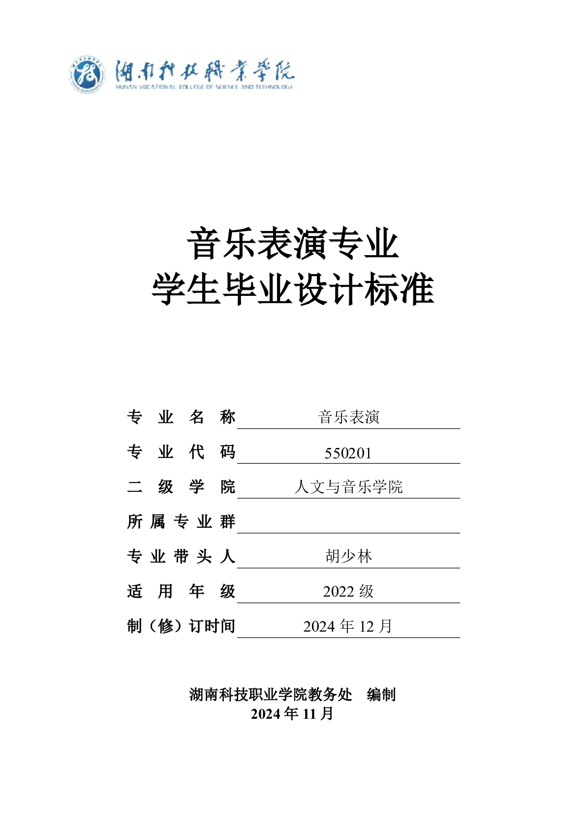 人文与音乐学院音乐表演专业2025届学生毕业设计标准