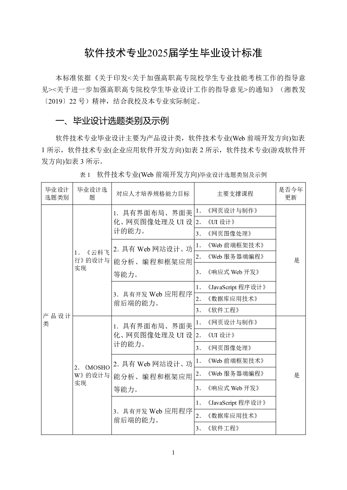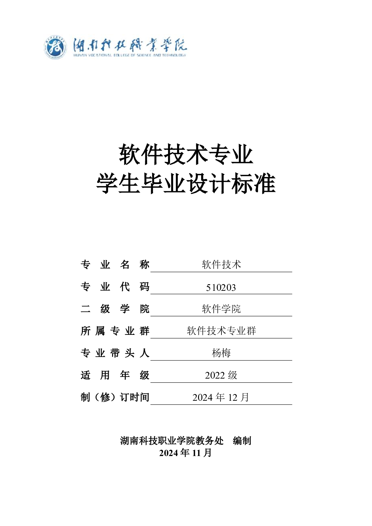 软件学院软件技术专业2025届学生毕业设计标准
