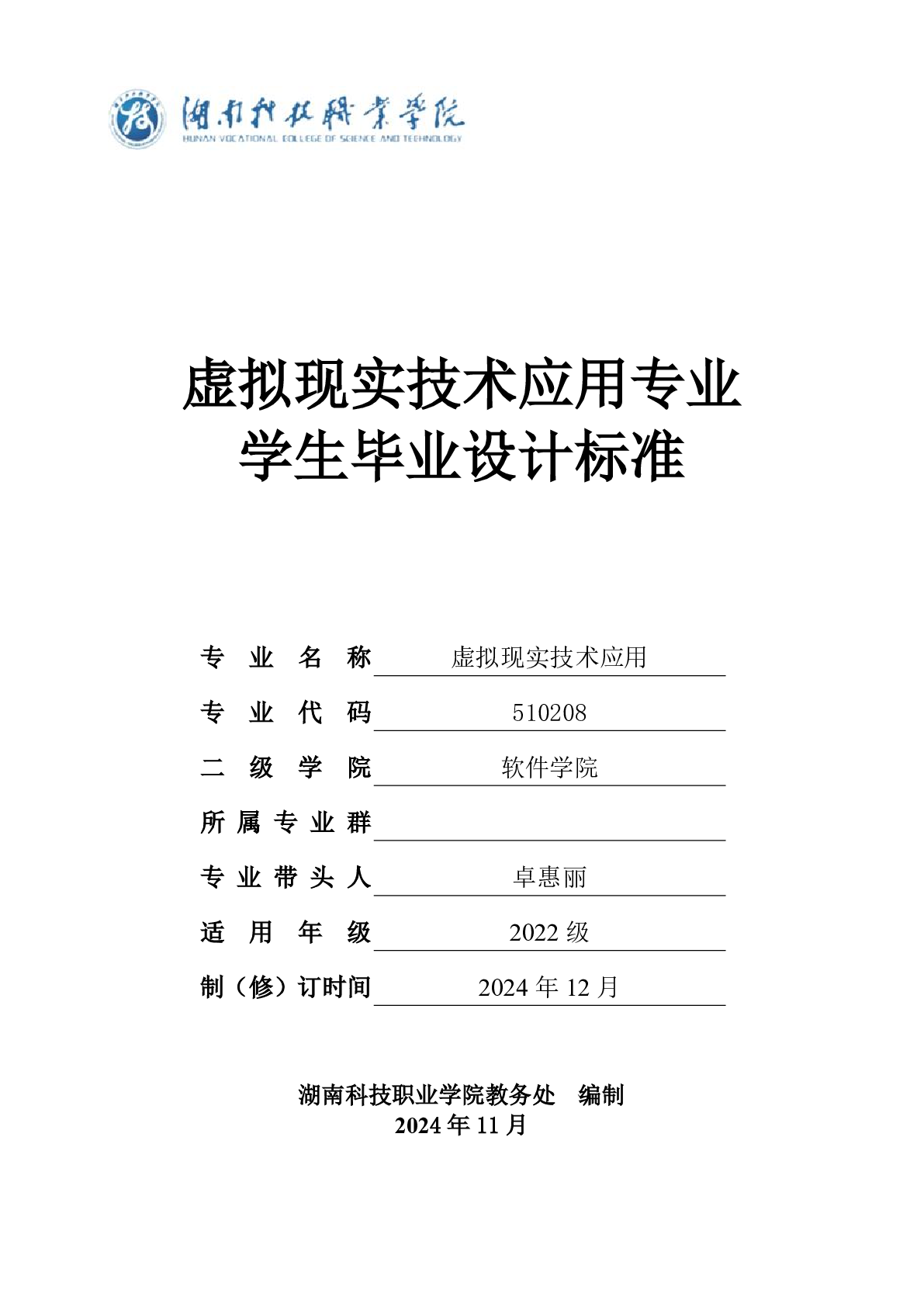 软件学院虚拟现实技术应用专业2025届毕业设计标准