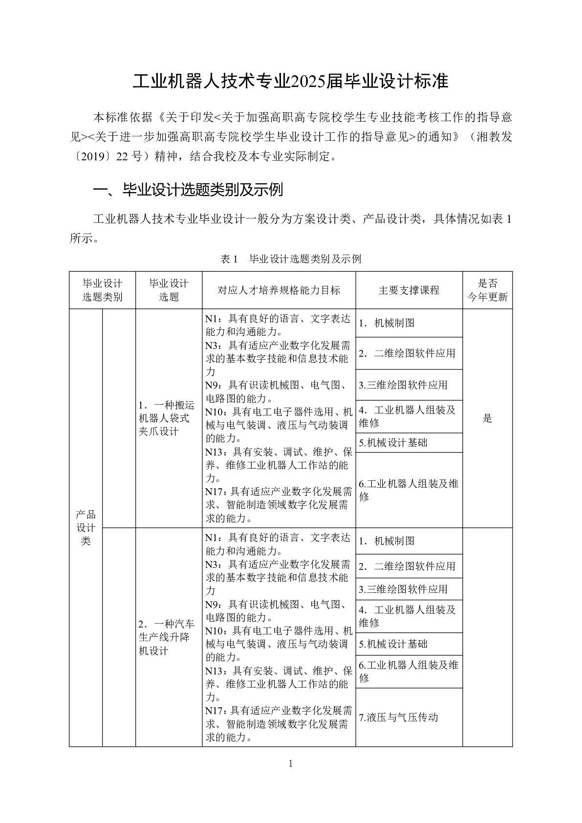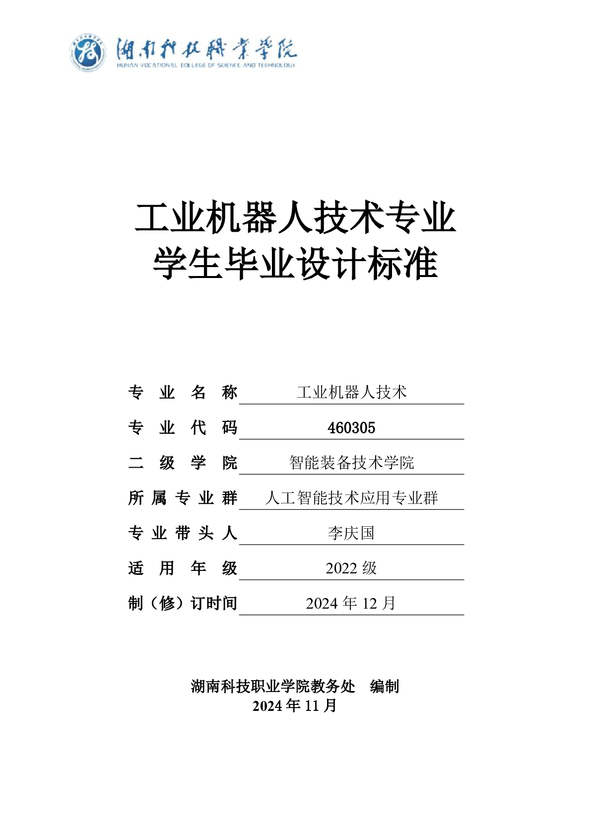 智能装备技术学院工业机器人技术专业2025届学生毕业设计标准