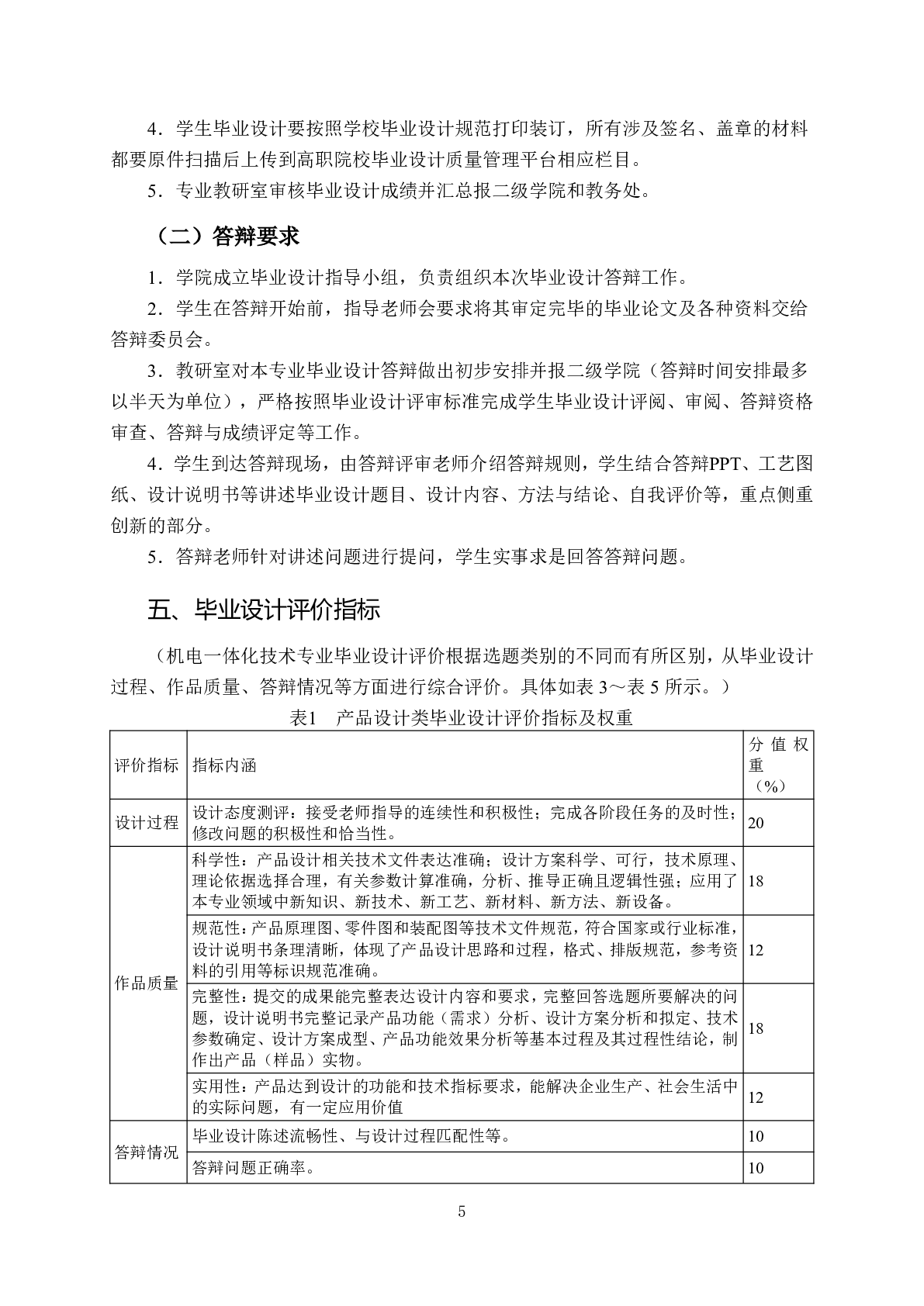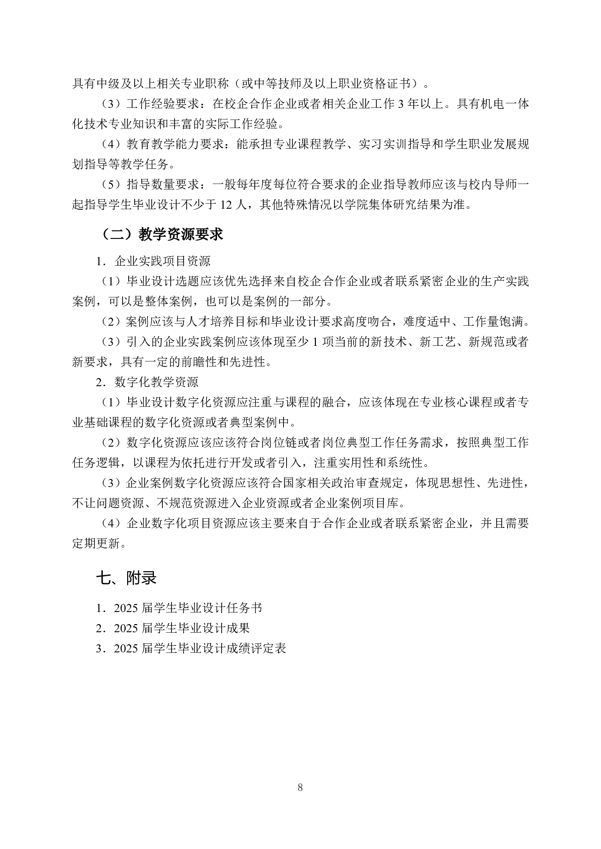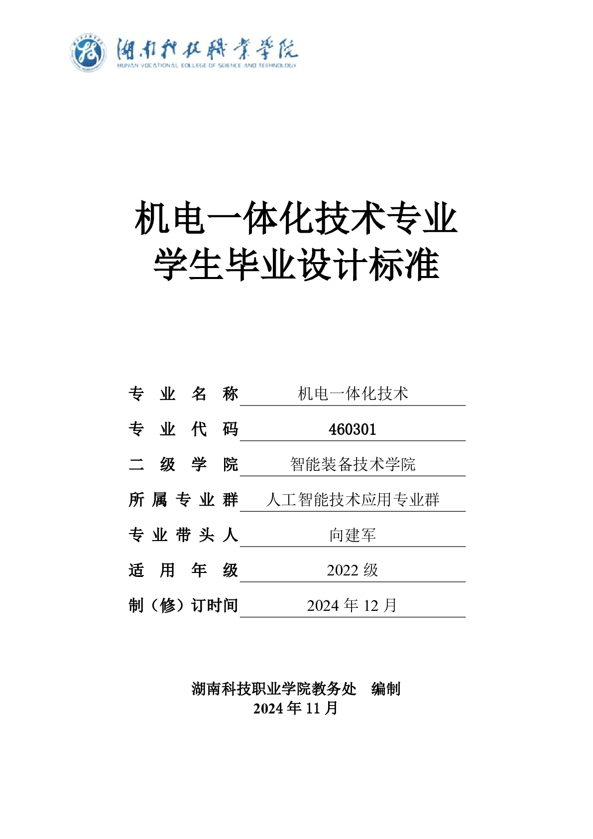 智能装备技术学院机电一体化技术专业2025届毕业设计标准