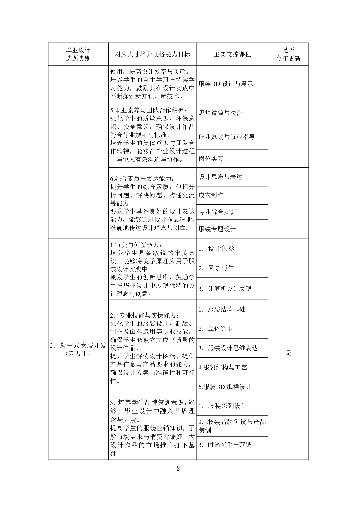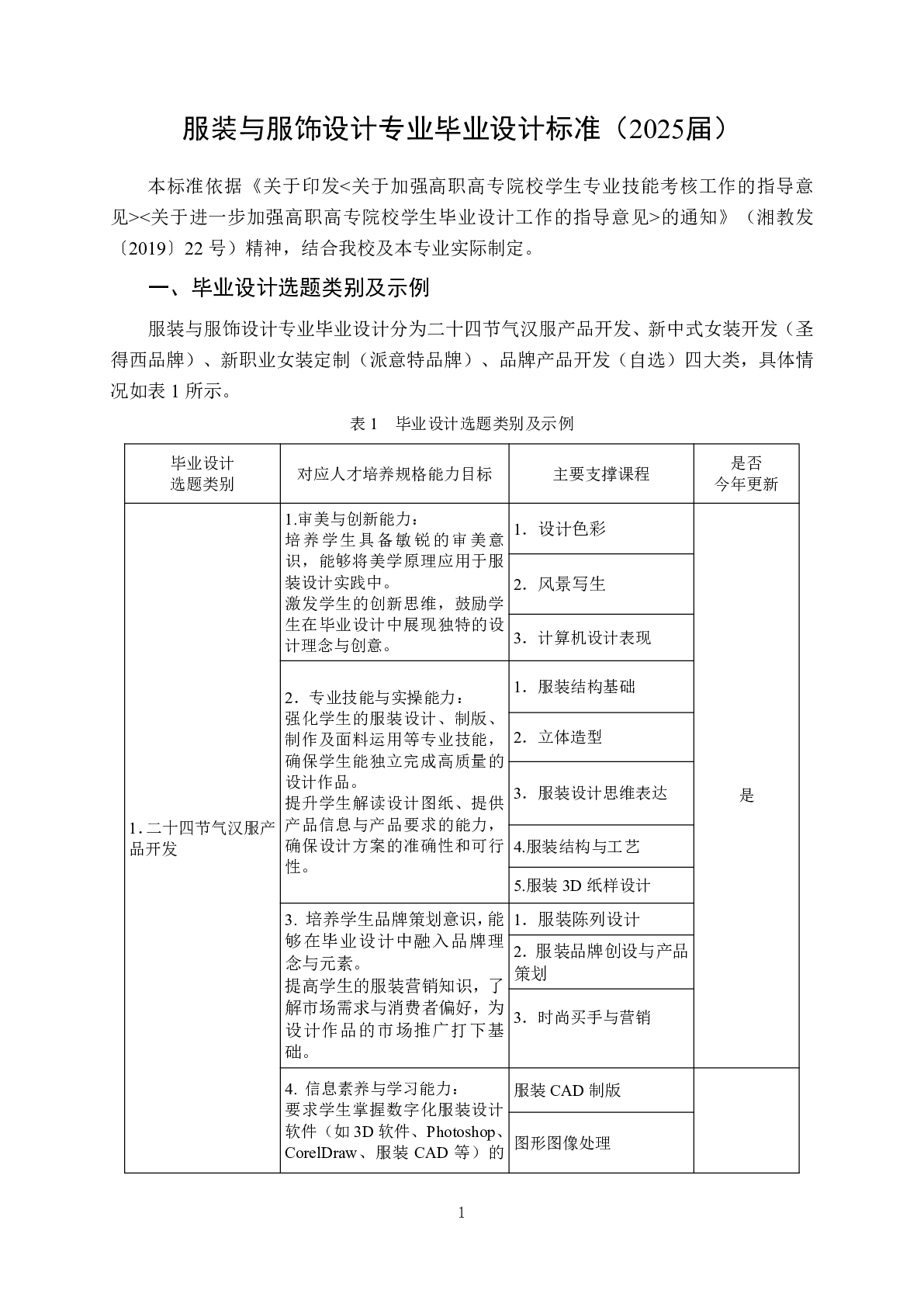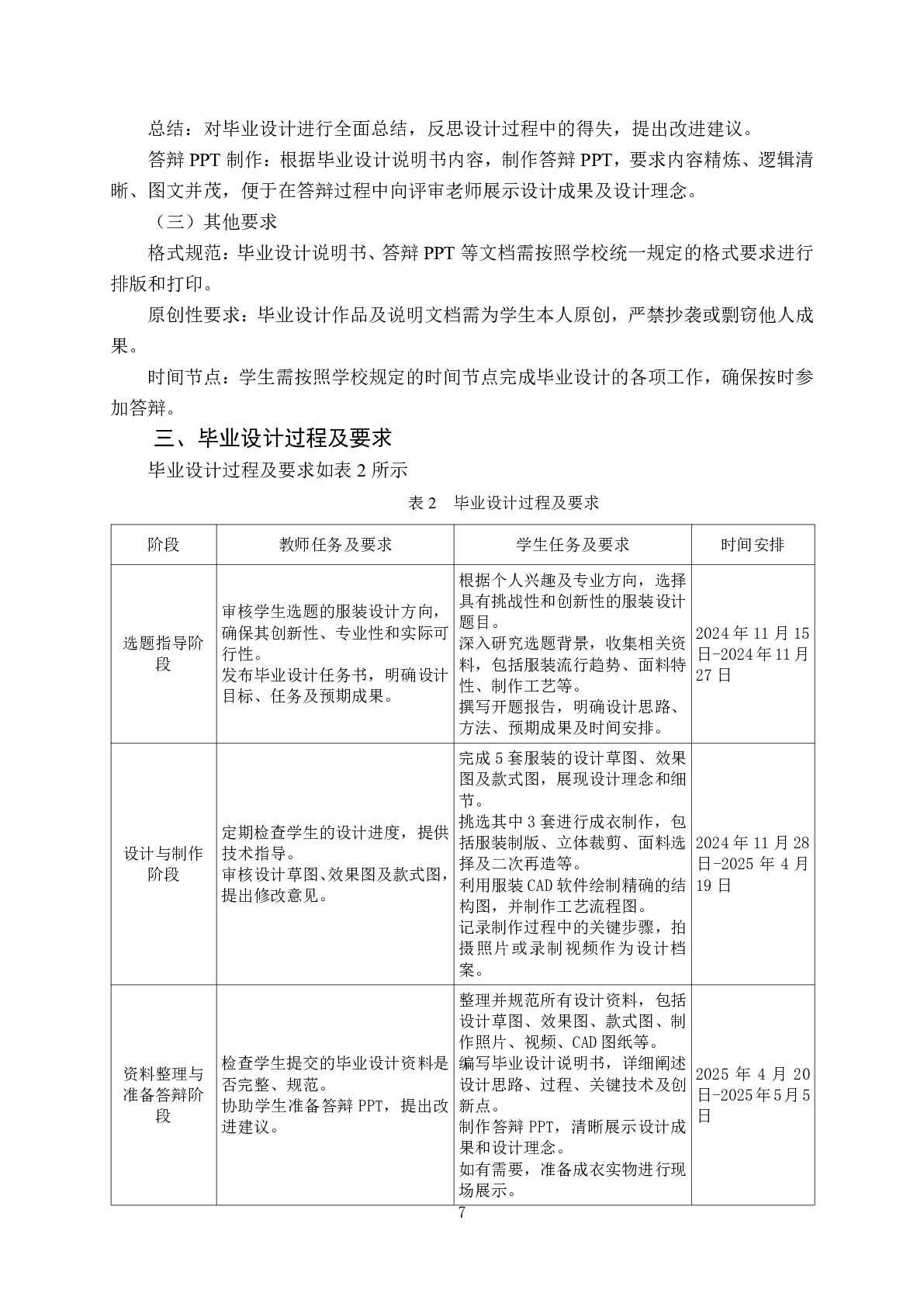 艺术设计学院服装与服饰设计专业2025届学生毕业设计标准