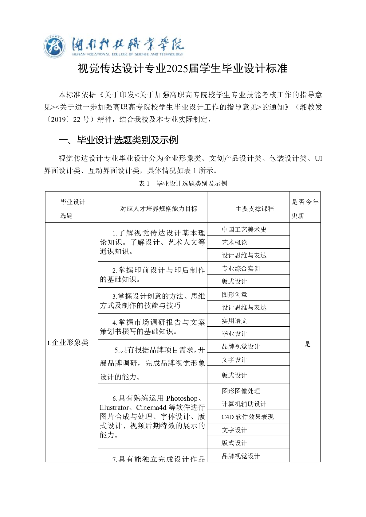 艺术设计学院视觉传达设计专业2025届学生毕业设计标准