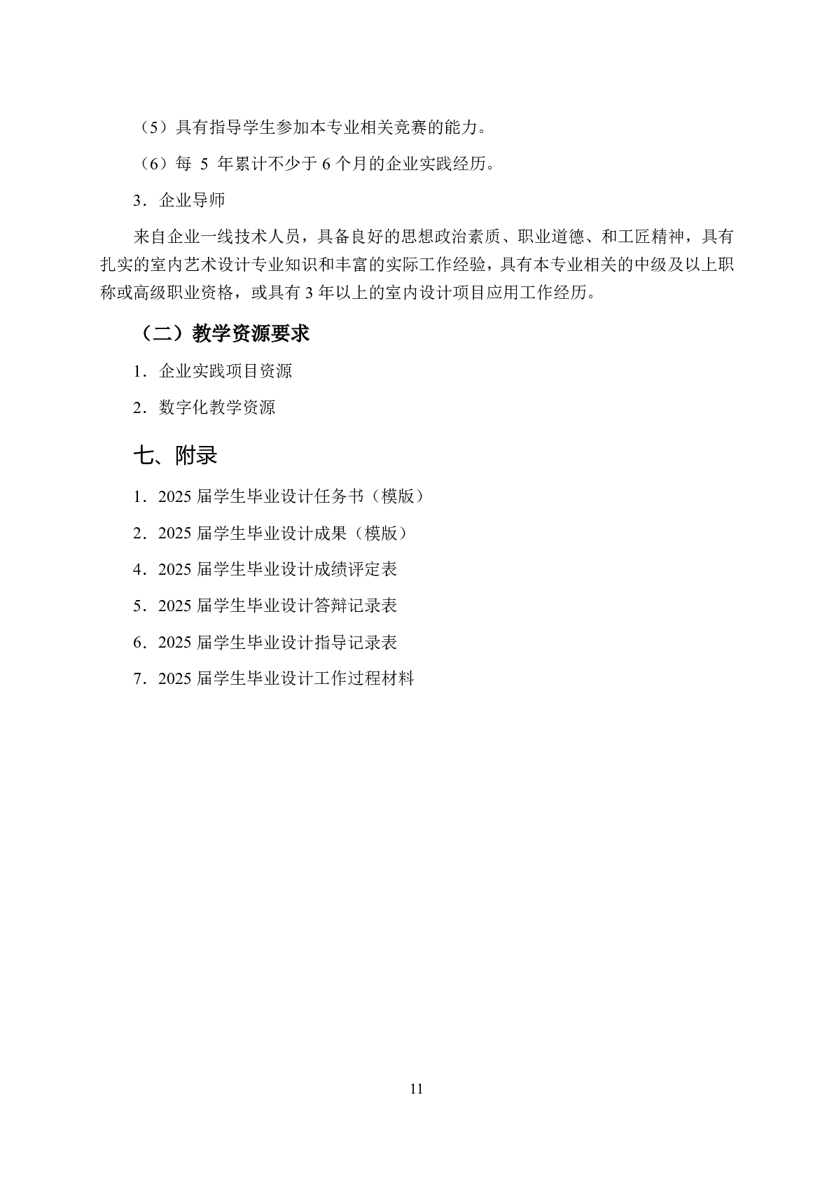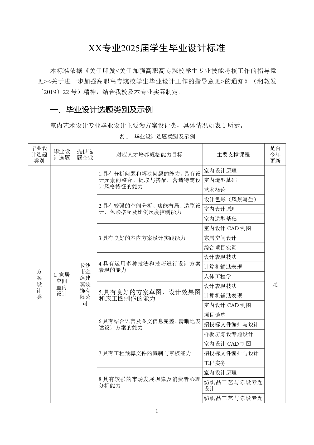 艺术设计学院室内艺术设计专业2025届学生毕业设计标准