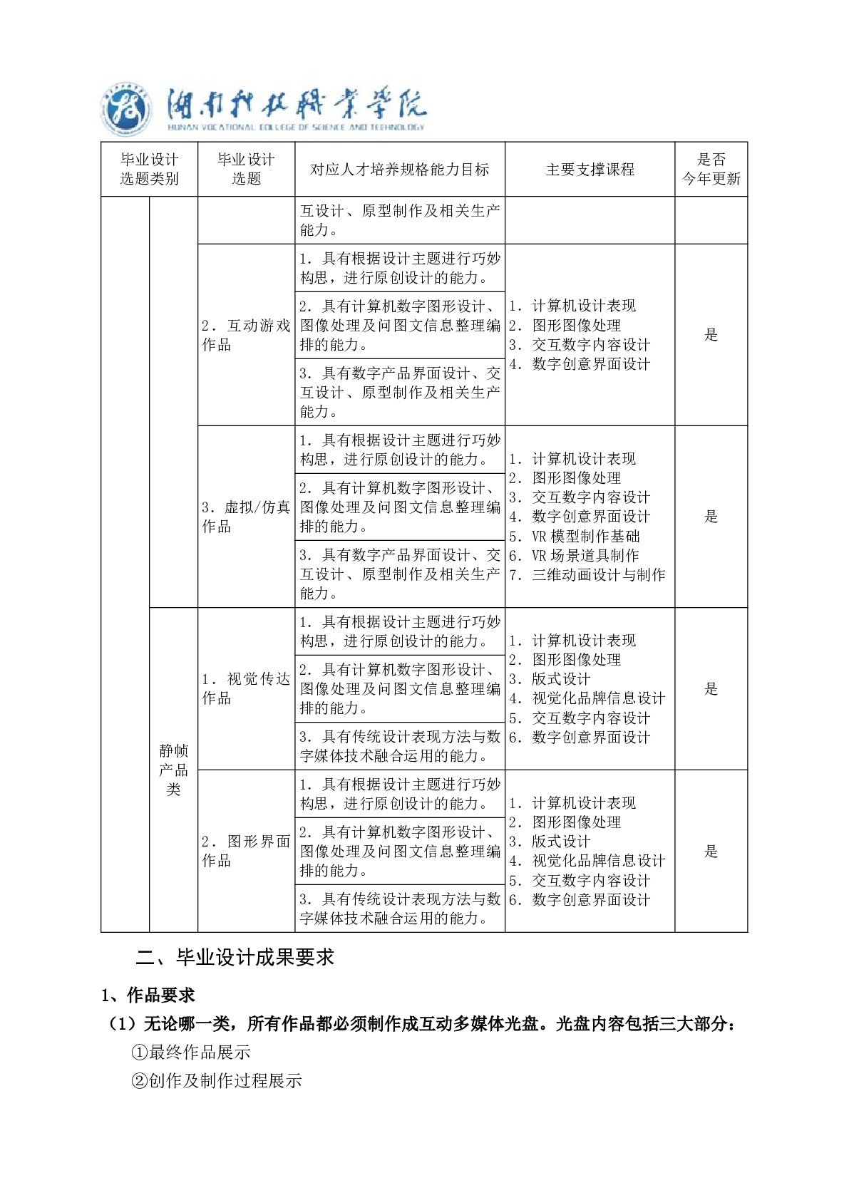艺术设计学院数字媒体艺术设计专业2025届学生毕业设计标准
