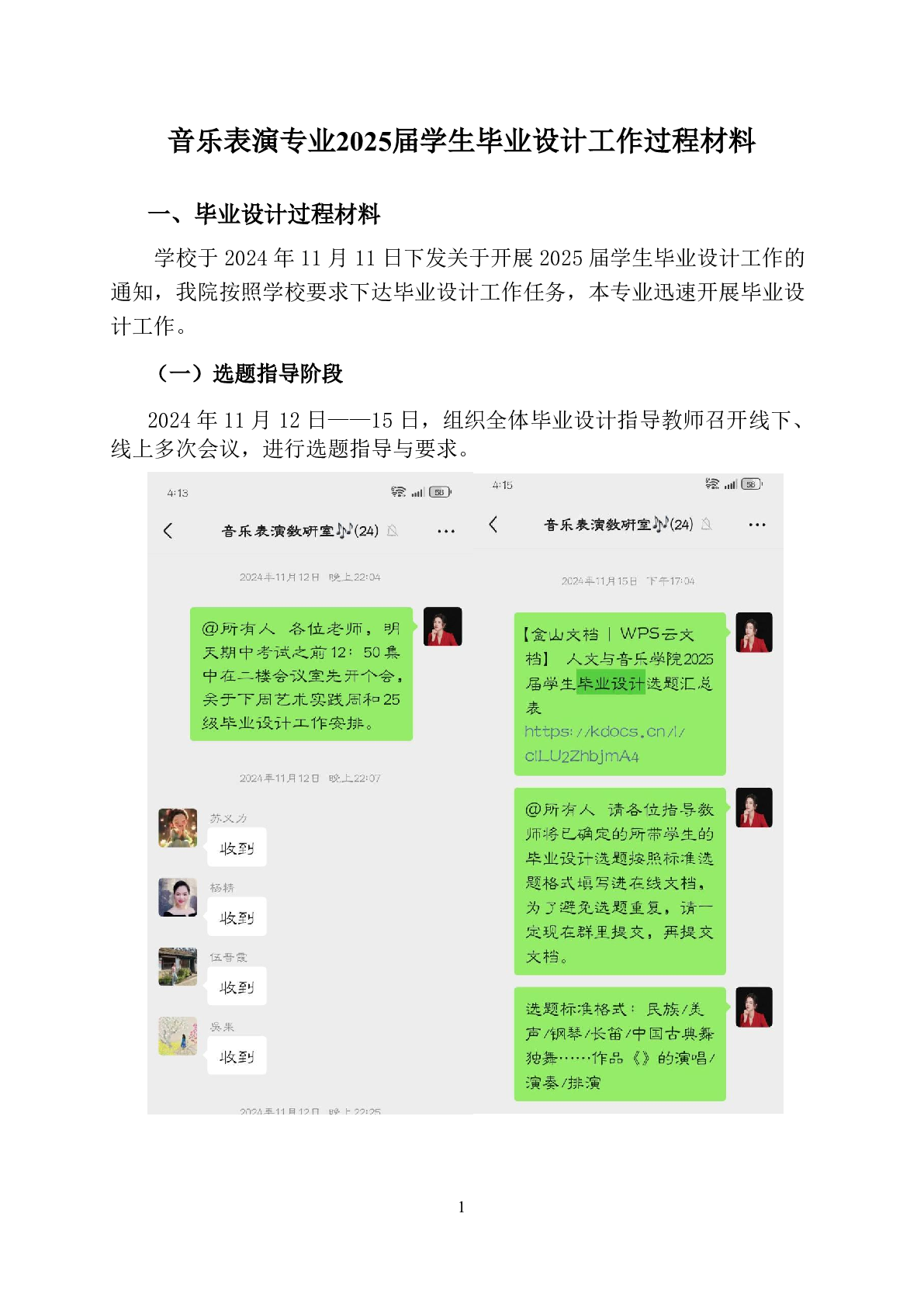 人文与音乐学院音乐表演专业2025届学生毕业设计工作过程材料