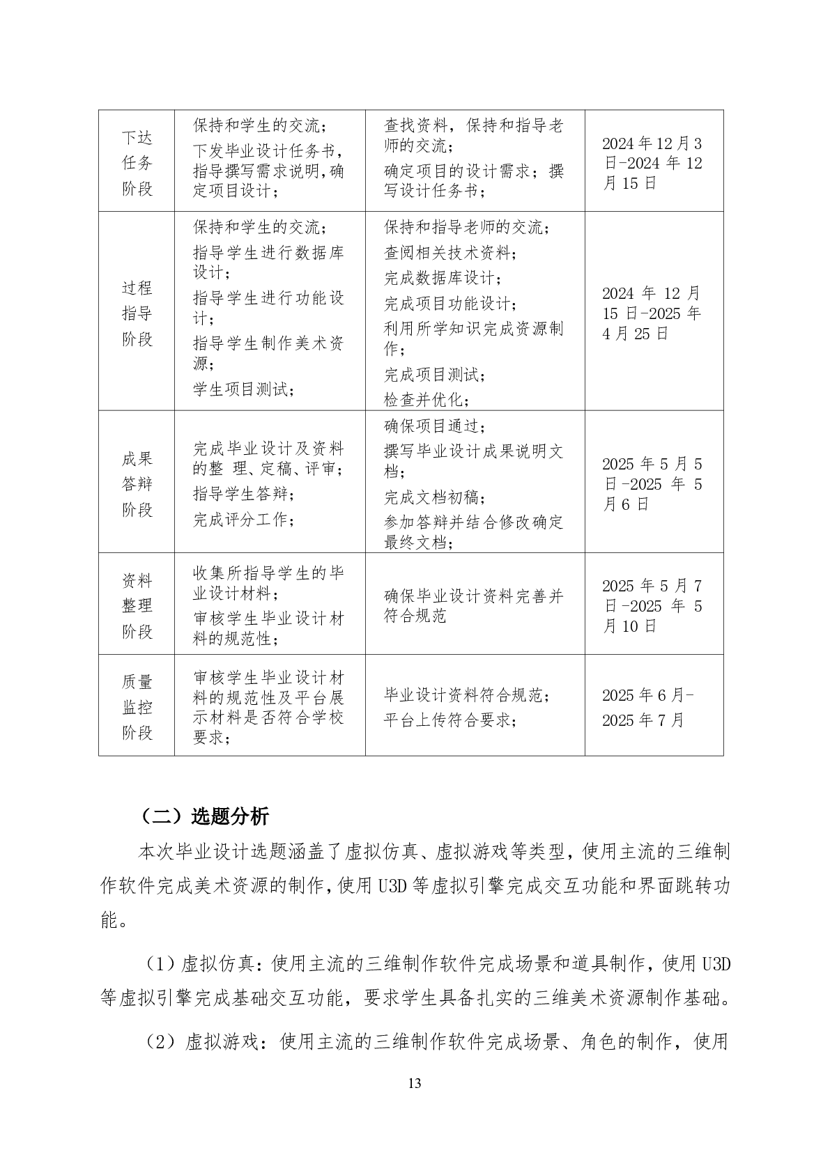 软件学院虚拟现实技术应用专业2025届学生毕业设计工作过程材料