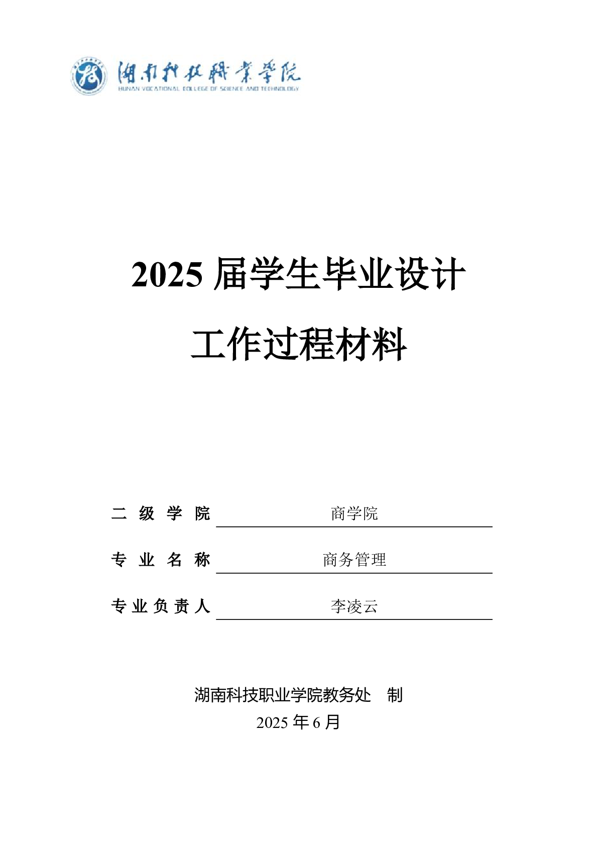 商学院商务管理专业2025届学生毕业设计工作过程材料