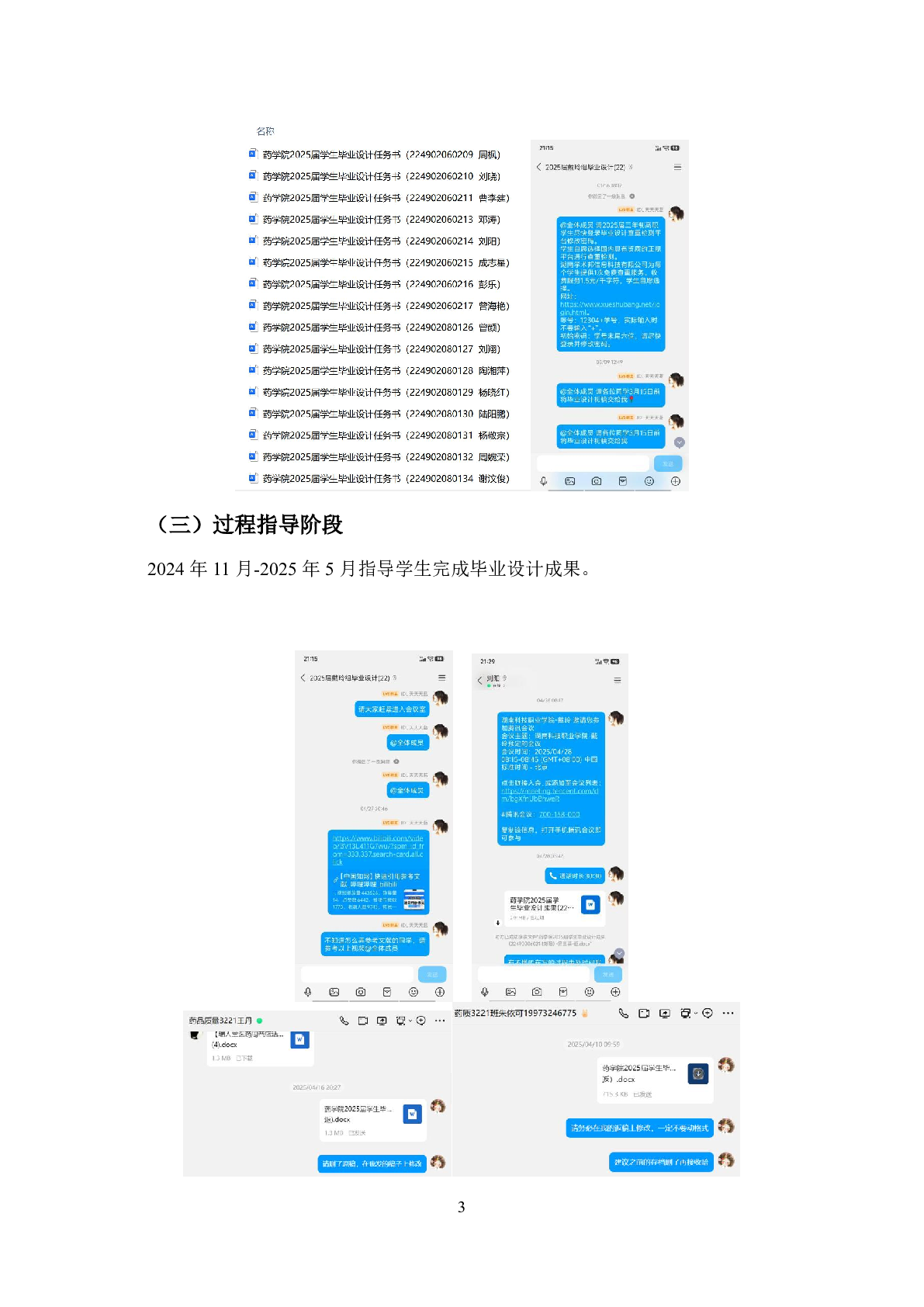 药学院药学专业2025届学生毕业设计工作过程材料