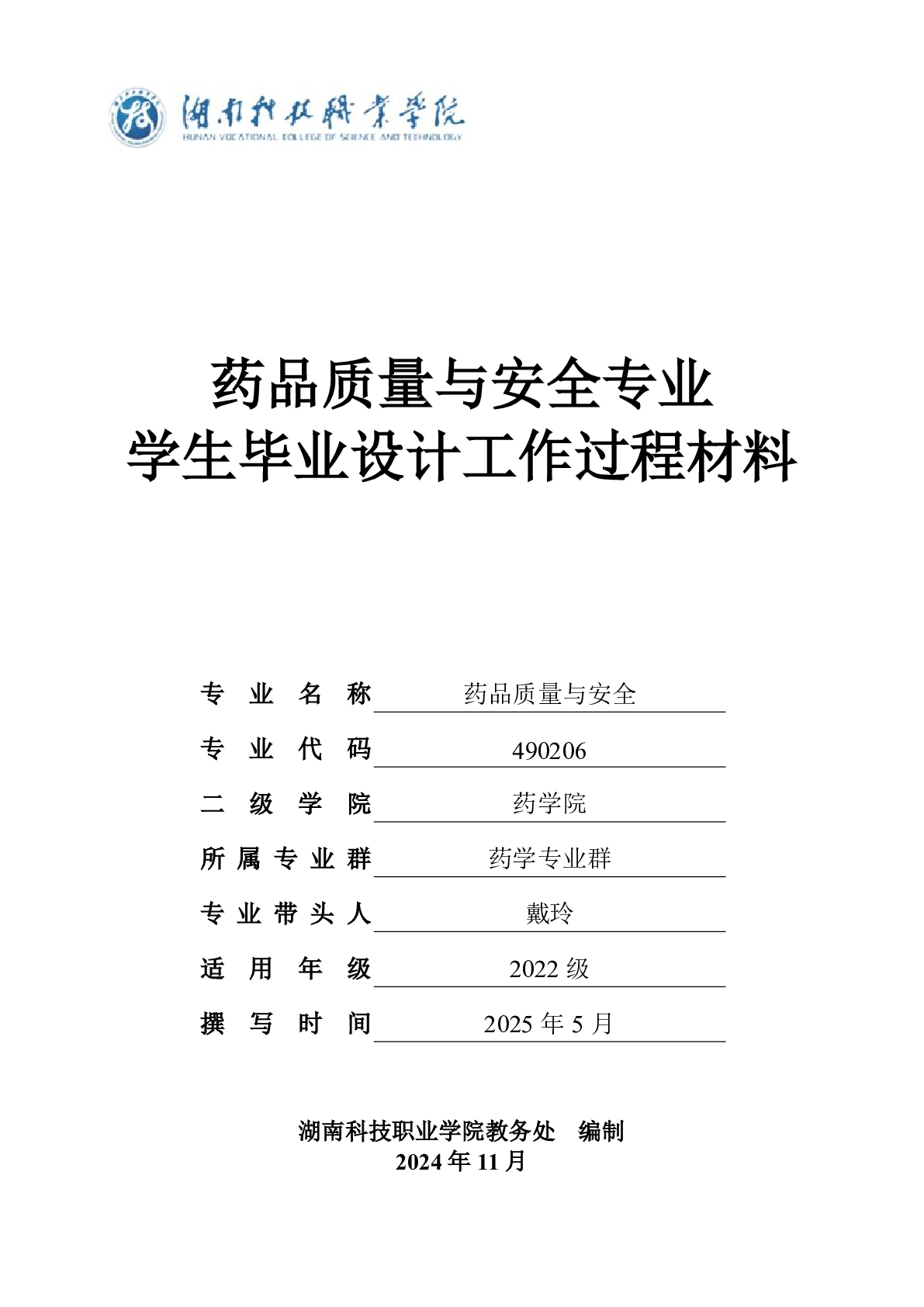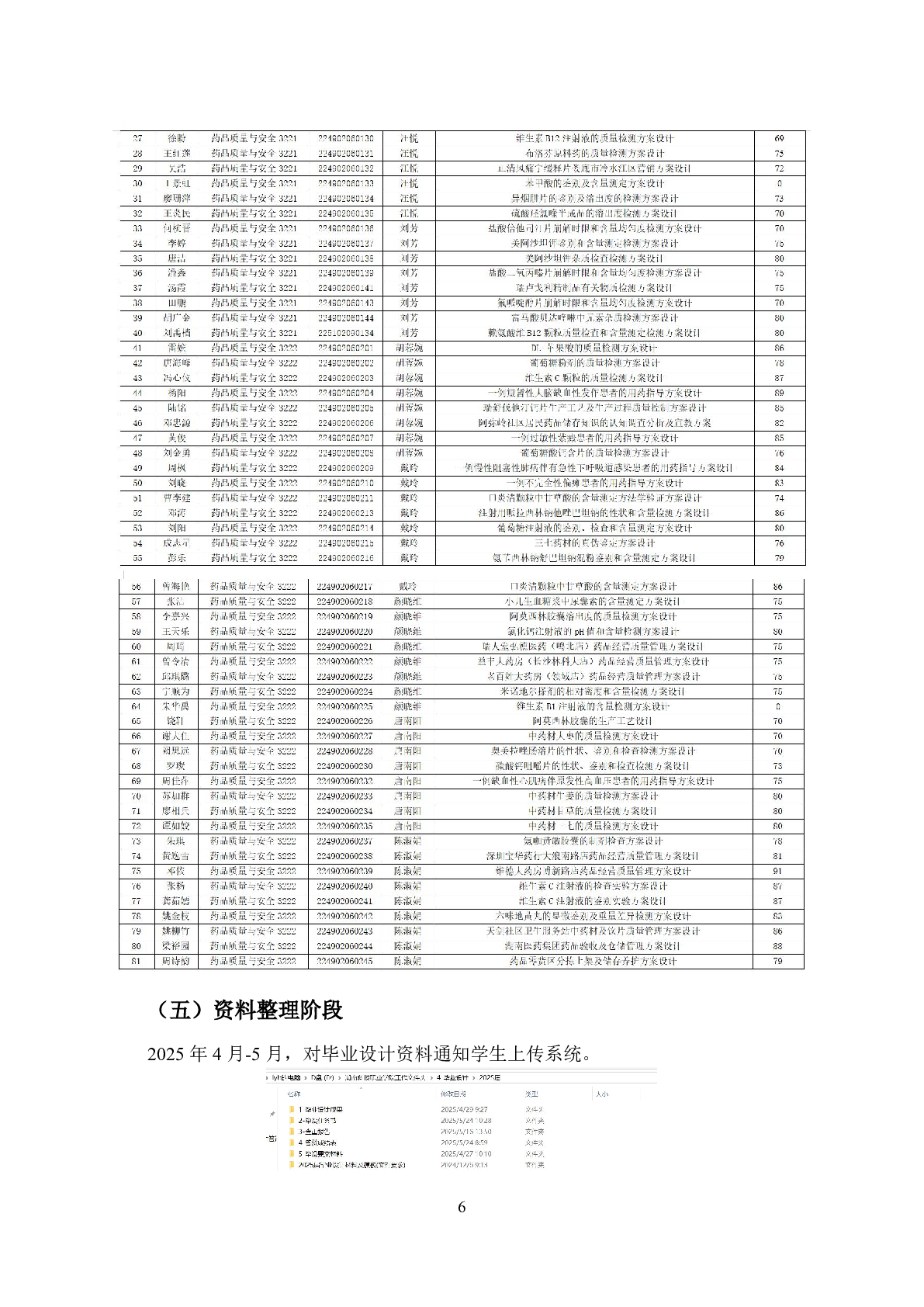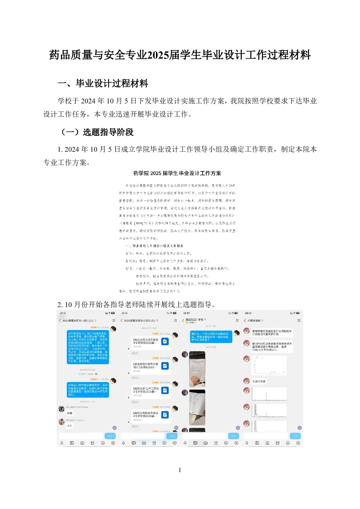 药学院药品质量与安全专业2025届学生毕业设计工作过程材料