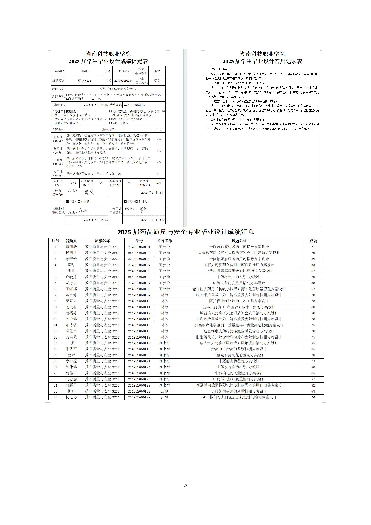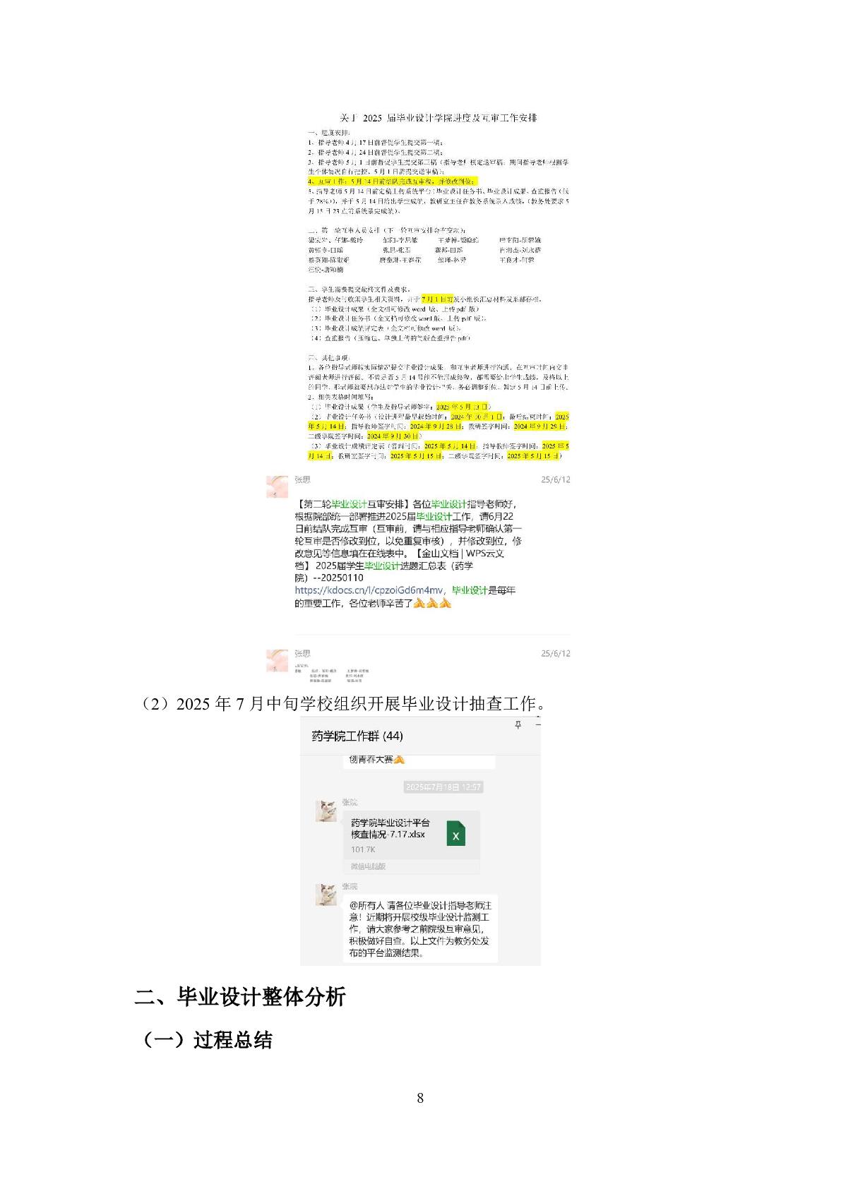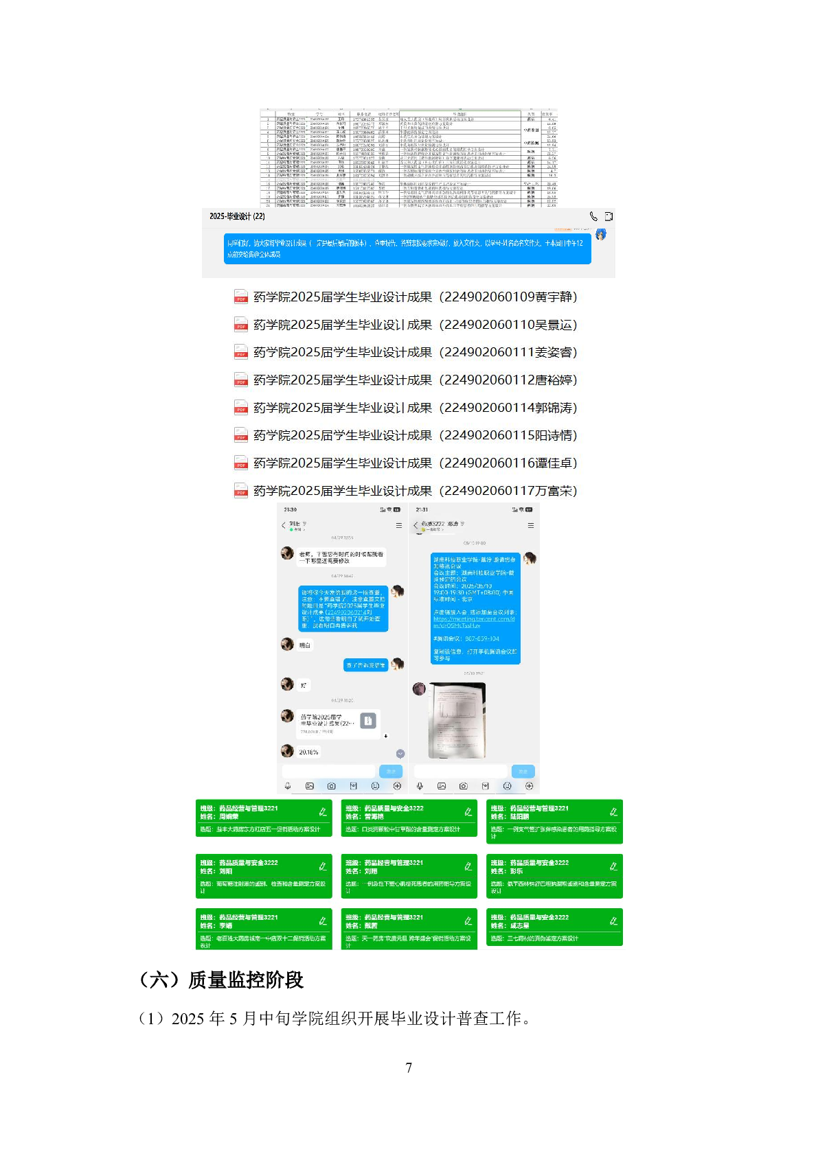 药学院药品质量与安全专业2025届学生毕业设计工作过程材料