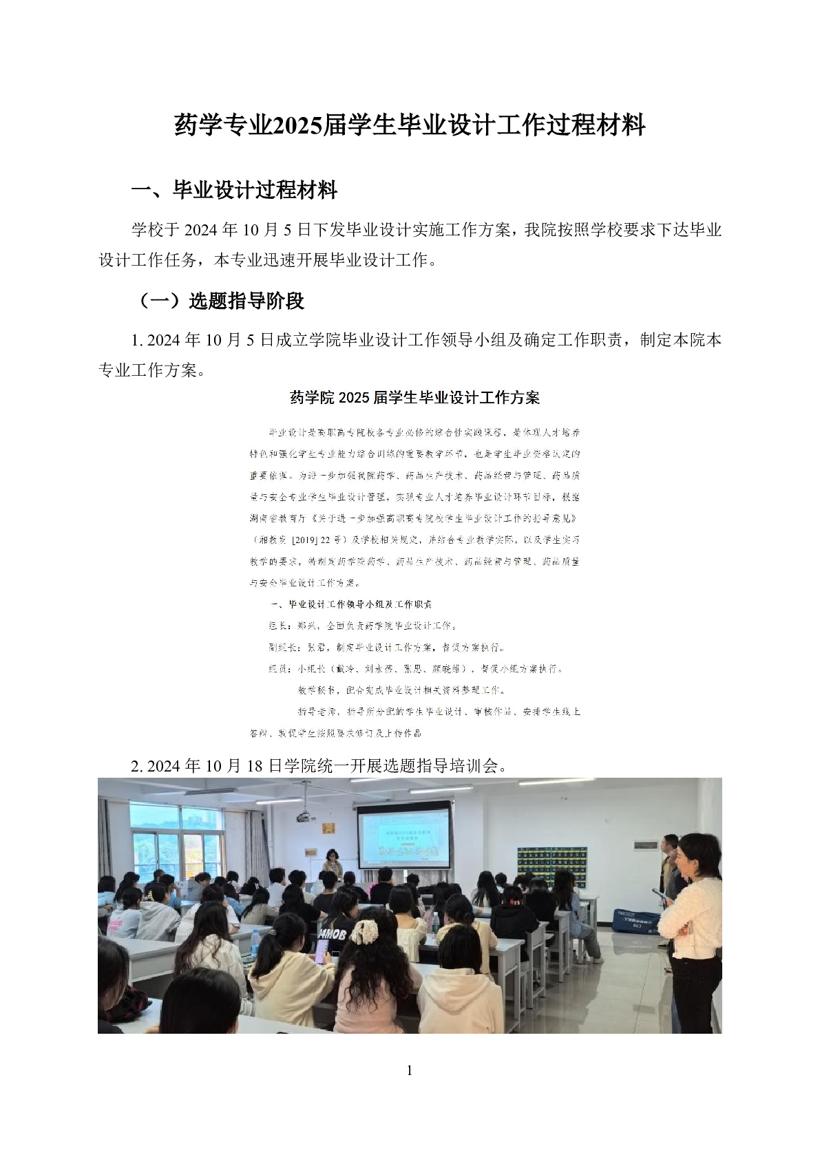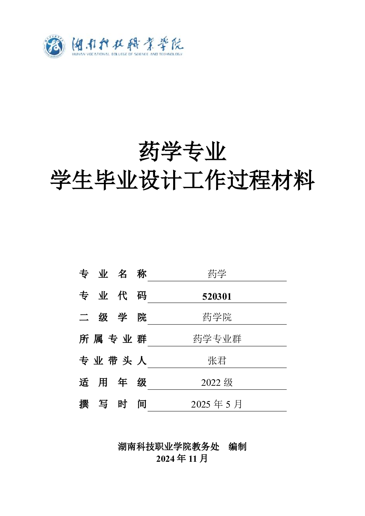 药学院药品质量与安全专业2025届学生毕业设计工作过程材料