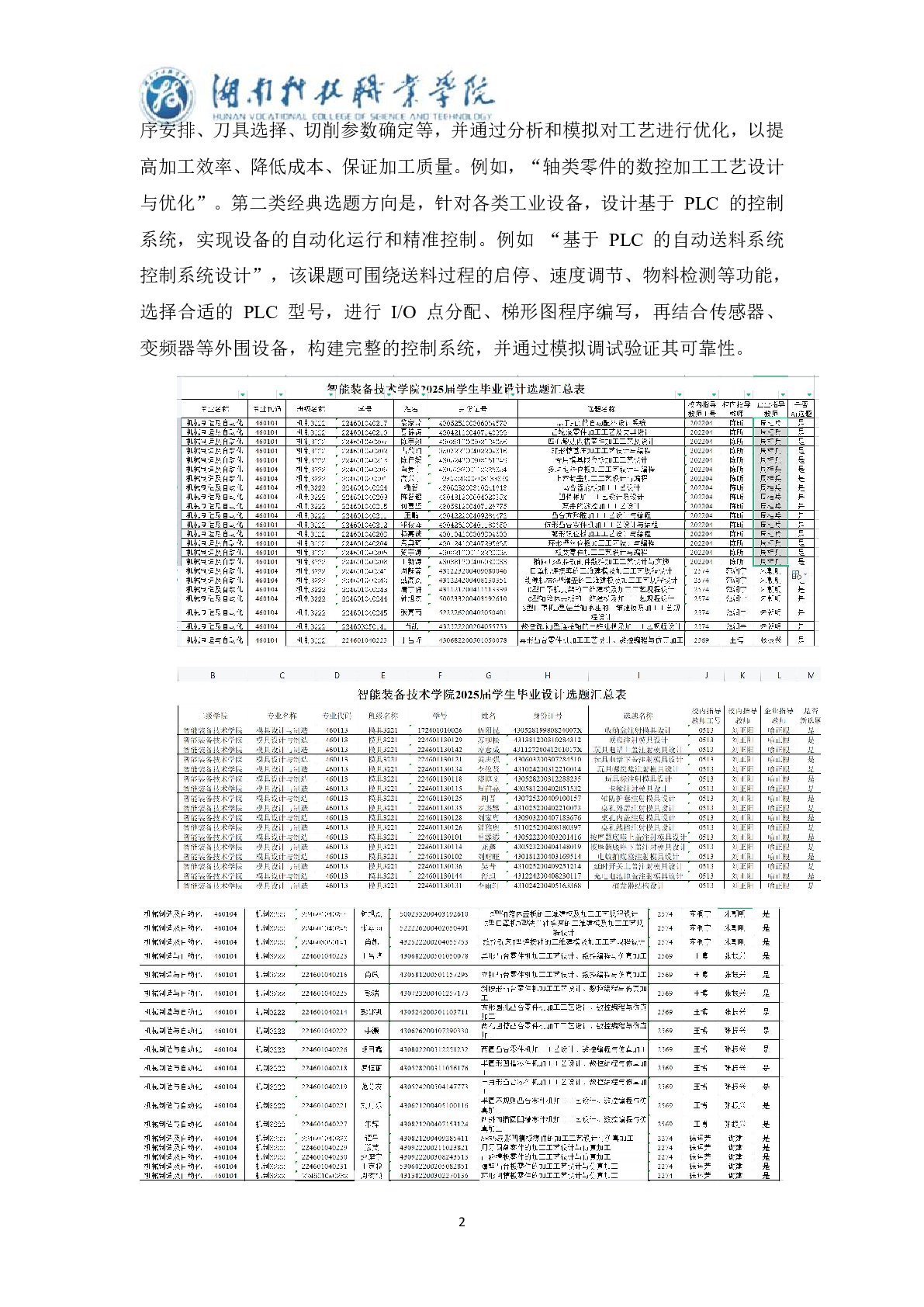 智能装备技术学院机电一体化技术专业2025届毕业设计工作过程材料