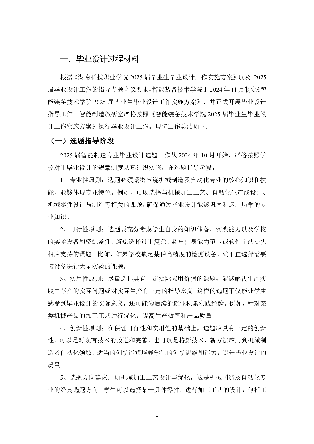 智能装备技术学院机械制造及自动化专业2025届毕业设计工作过程材料
