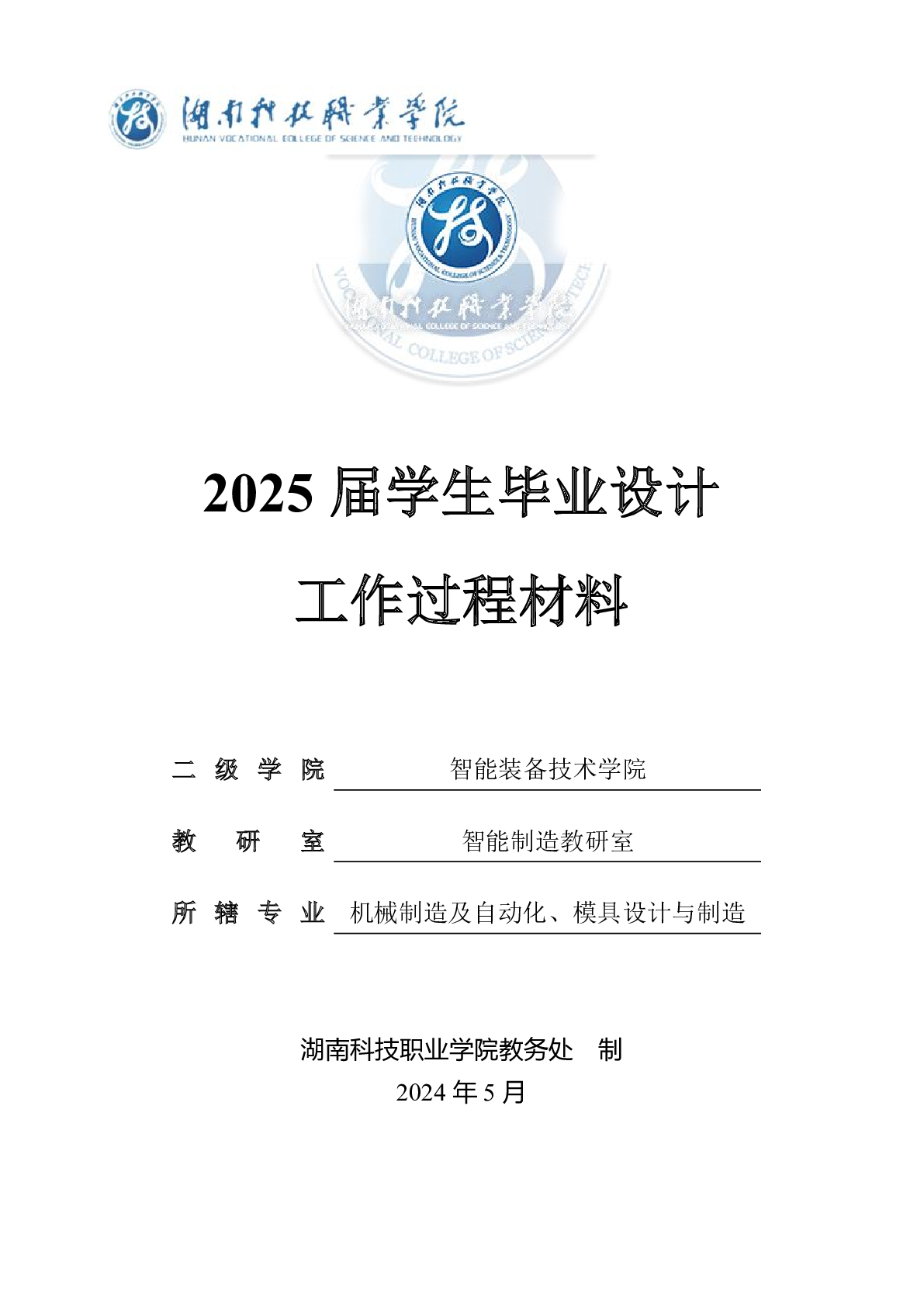 智能装备技术学院模具设计与制造专业2025届毕业设计工作过程材料
