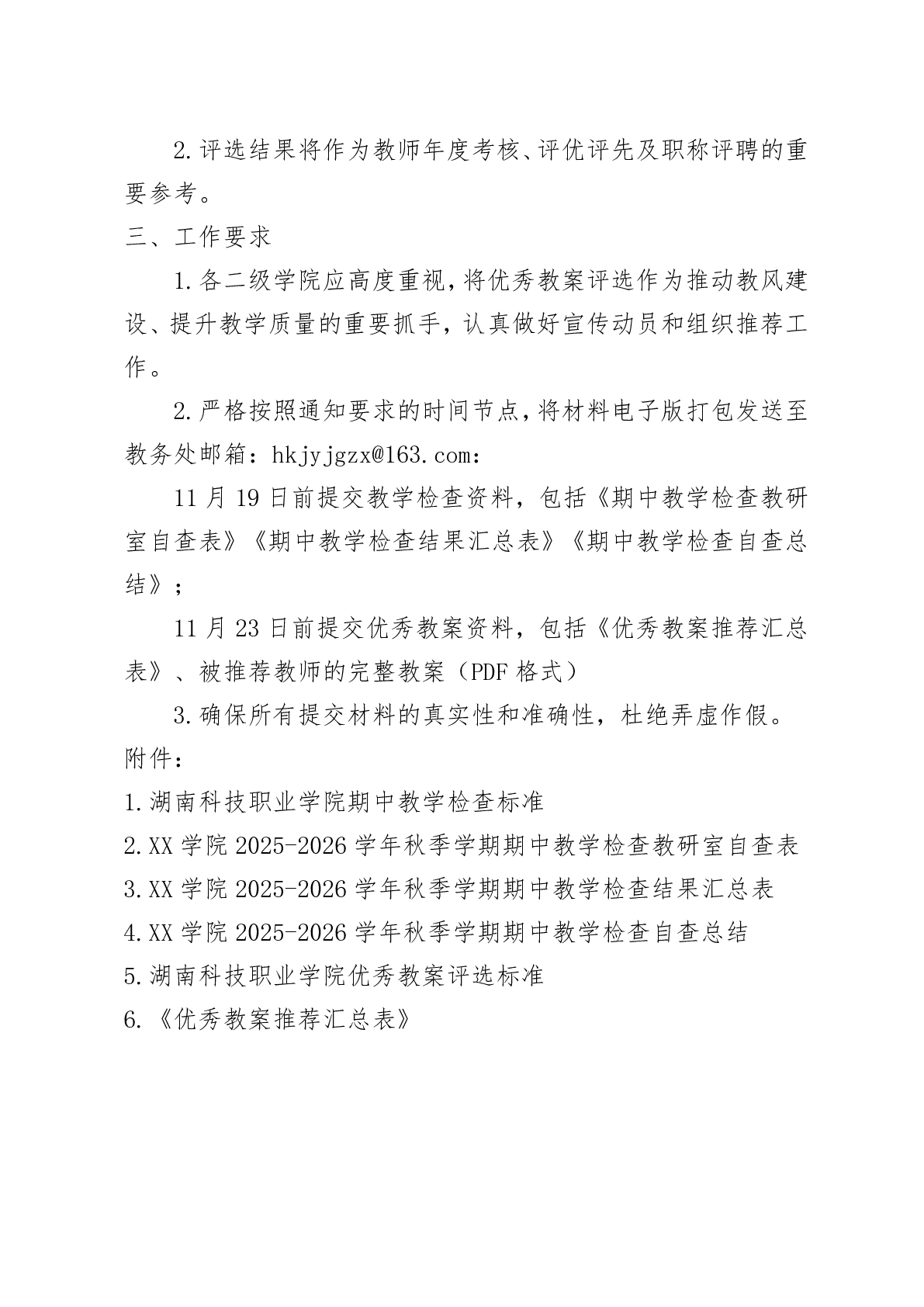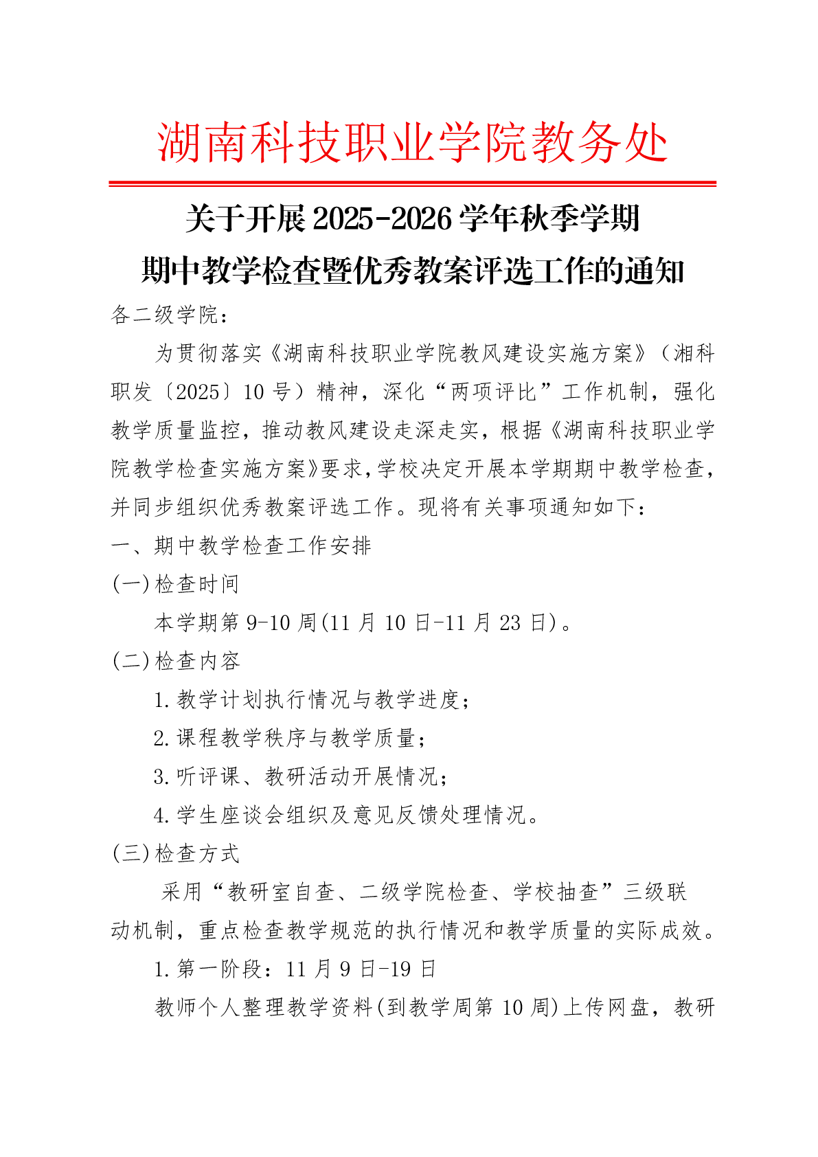 关于开展2025-2026学年秋季学期期中教学检查暨优秀教案评选工作的通知