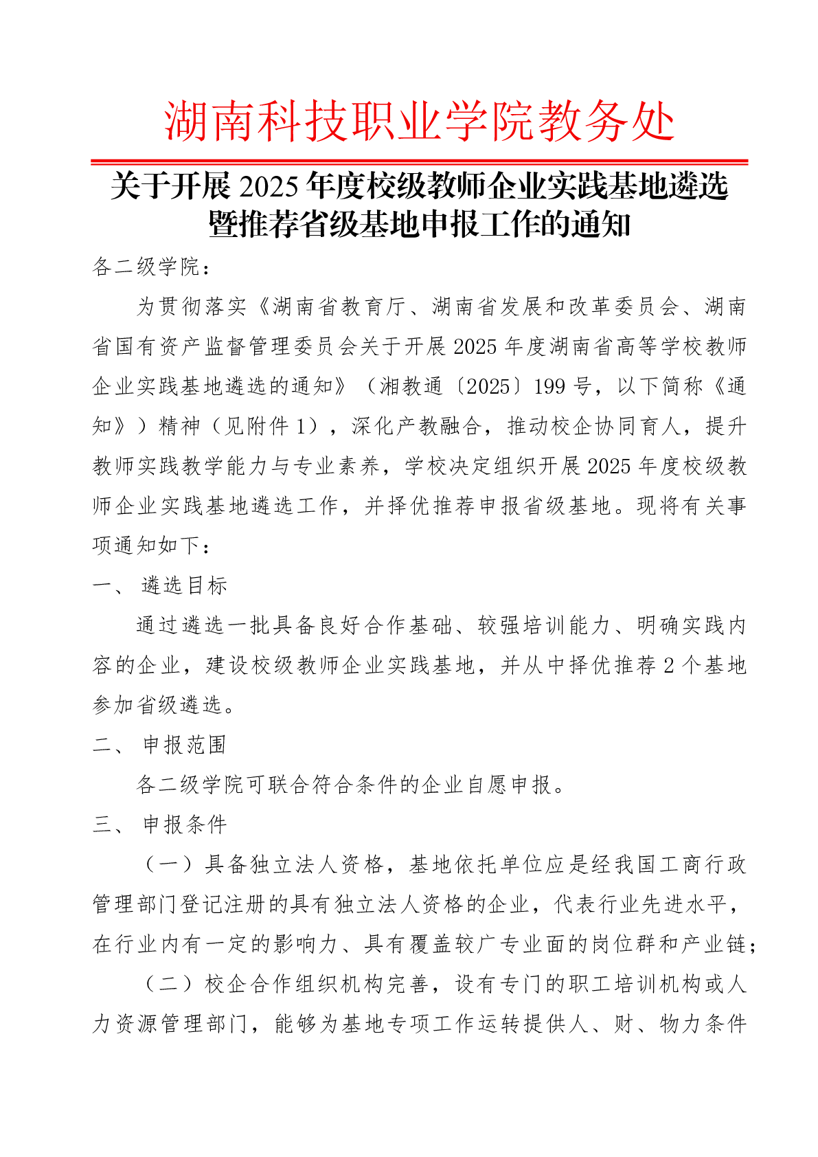 关于开展2025年度校级教师企业实践基地遴选暨推荐省级基地申报工作的通知