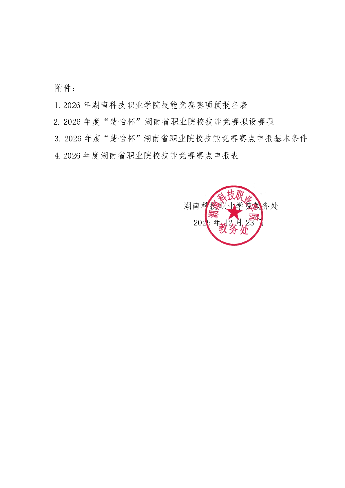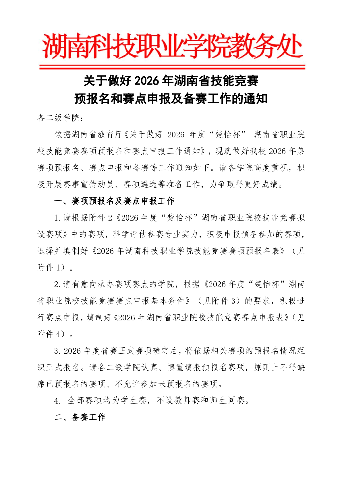 关于做好我校2026年湖南省职业院校技能竞赛赛项预报名和赛点申报及备赛工作的通知