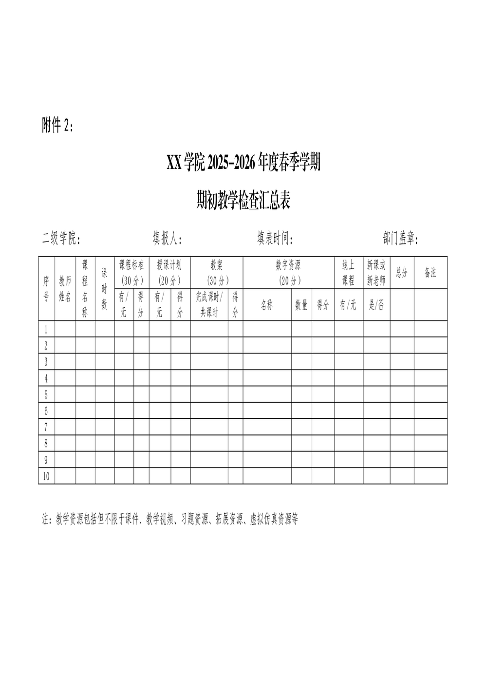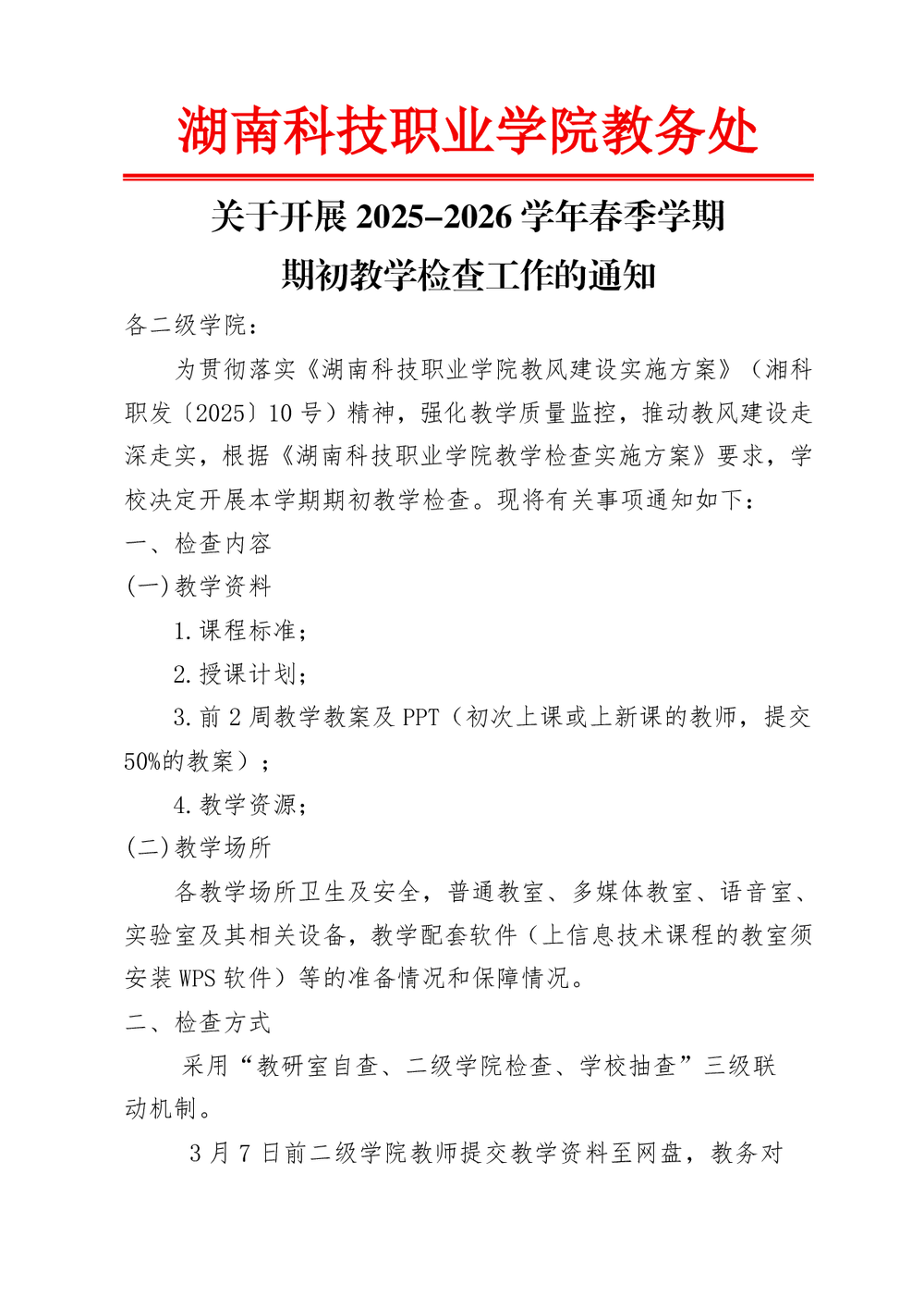 关于开展2025-2026学年春季学期期初教学检查的通知